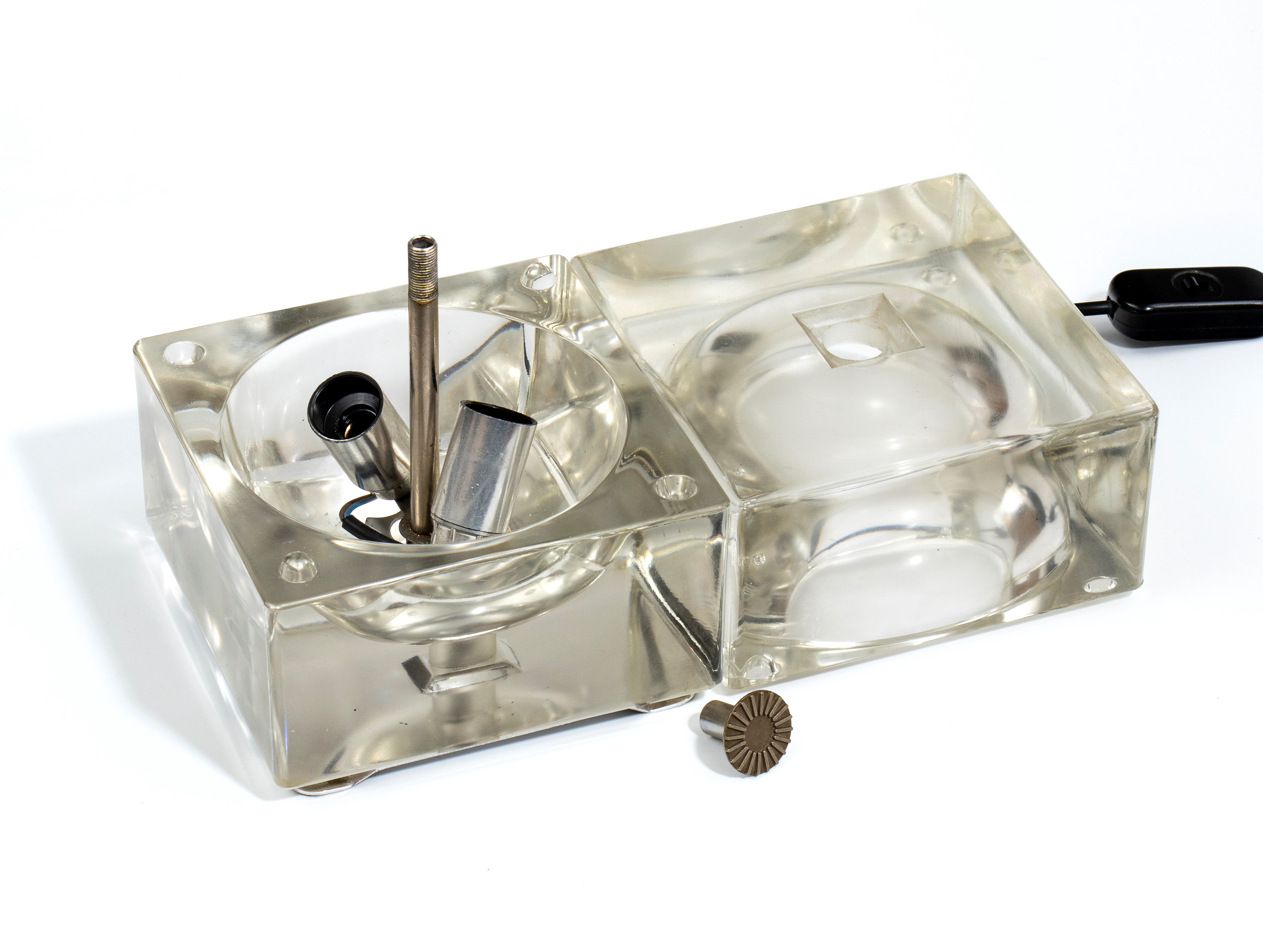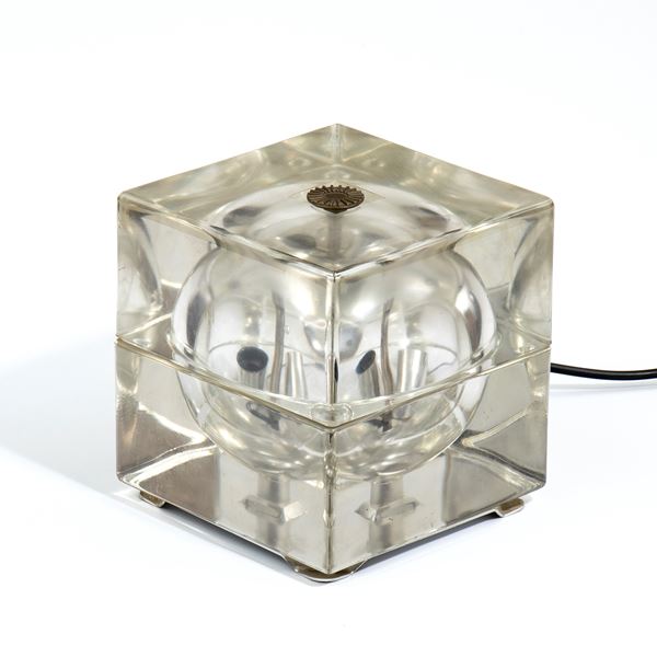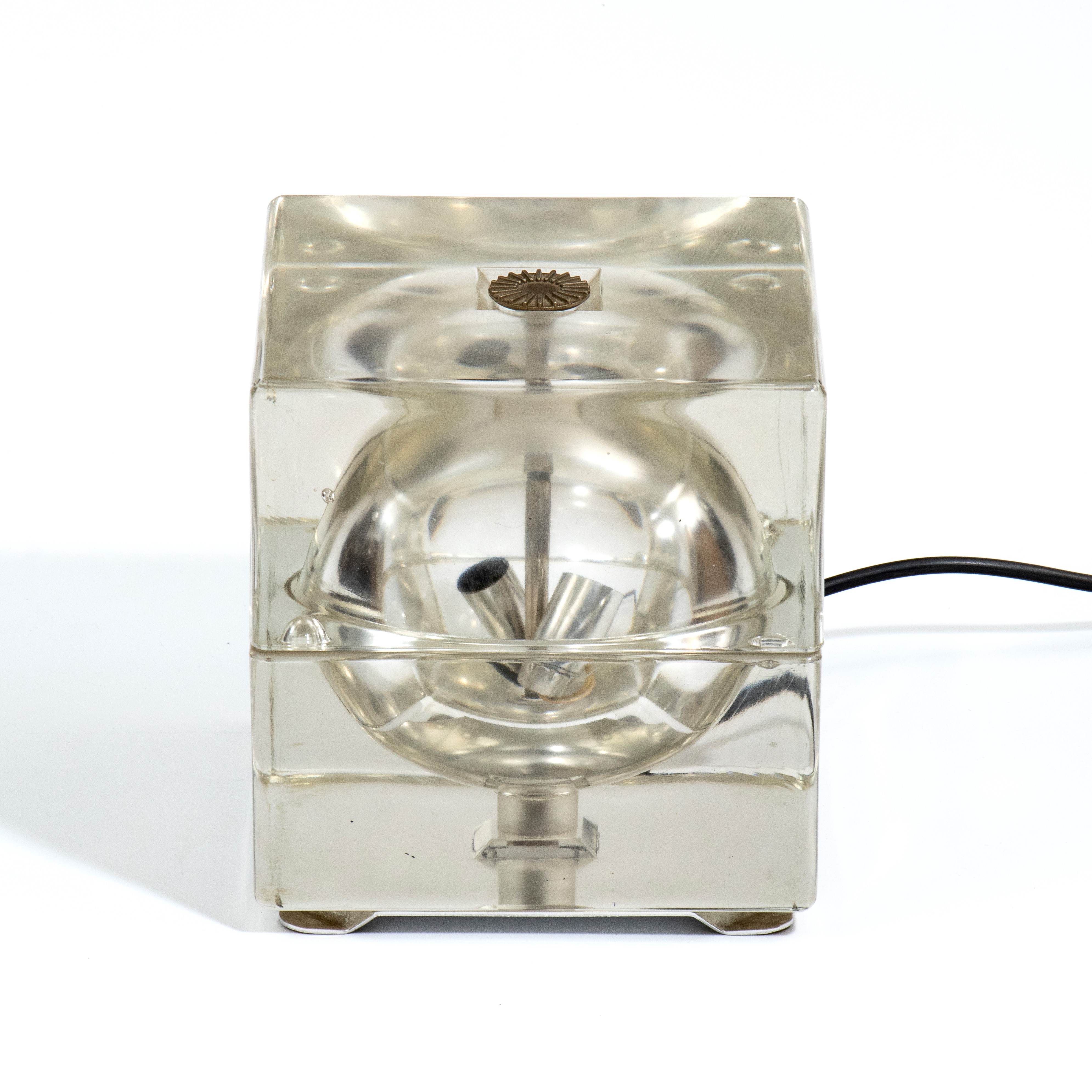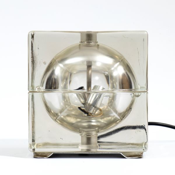 Lampada da tavolo cubo sfera disegnata da Alessandro Mendini, Italia, XX secolo