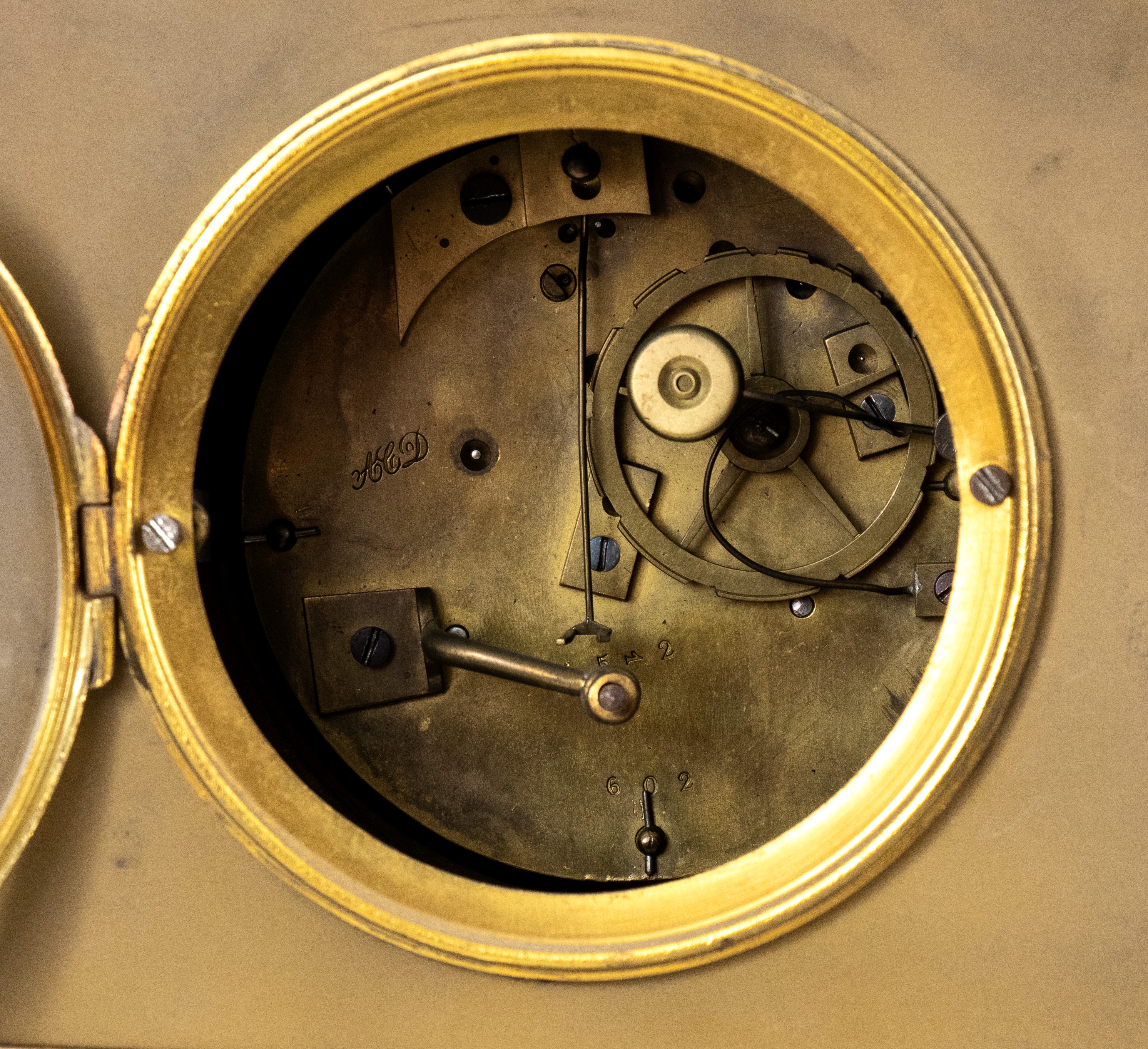 Orologio da camino in bronzo dorato, Francia, XIX secolo
