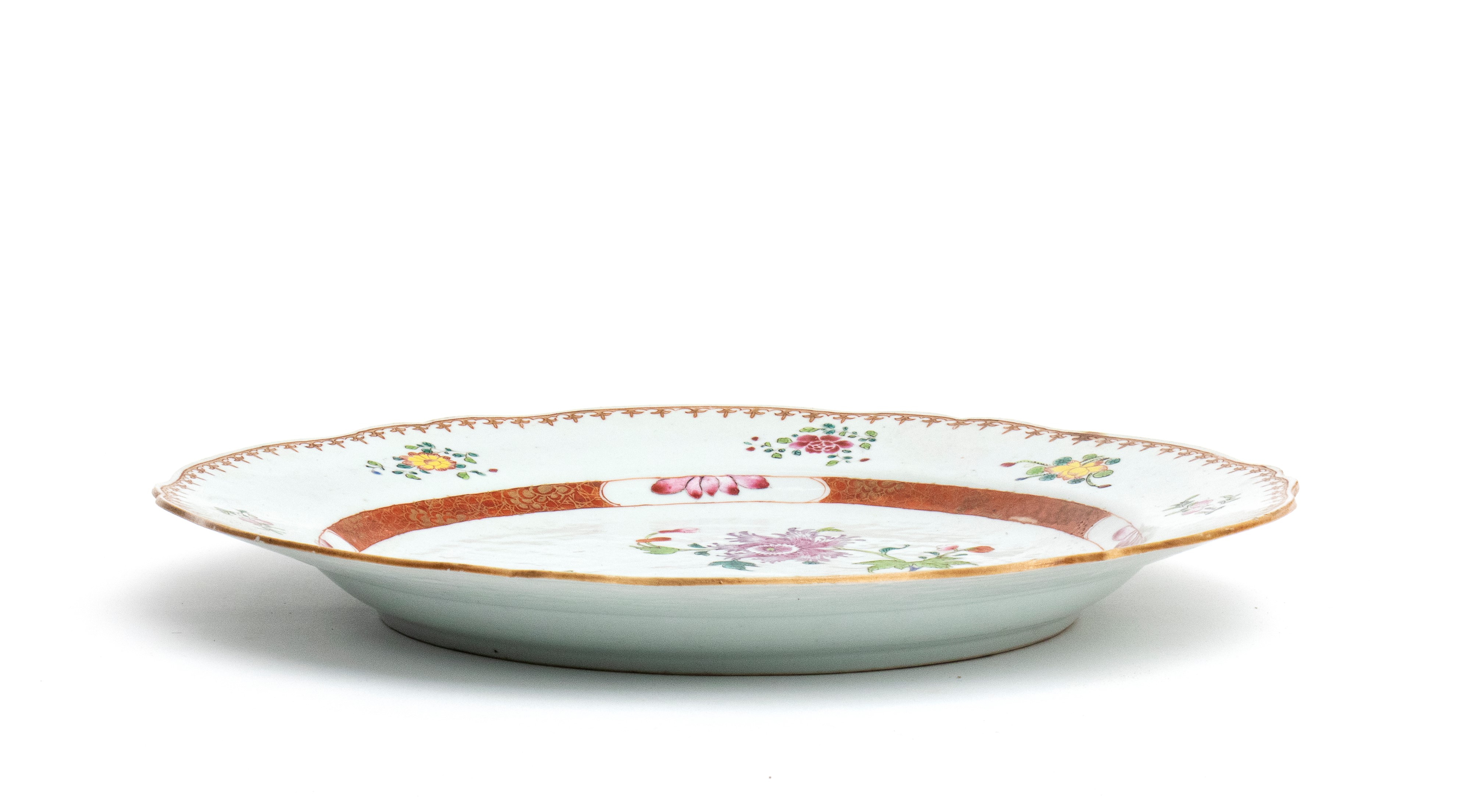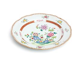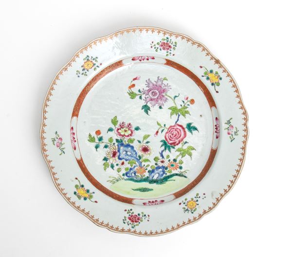 Piatto in porcellana cinese "Famiglia Rosa", Cina, epoca Qing