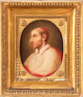Santo ritratto in veste cardinalizia. Sul retro reca due antiche iscrizioni a pennello.