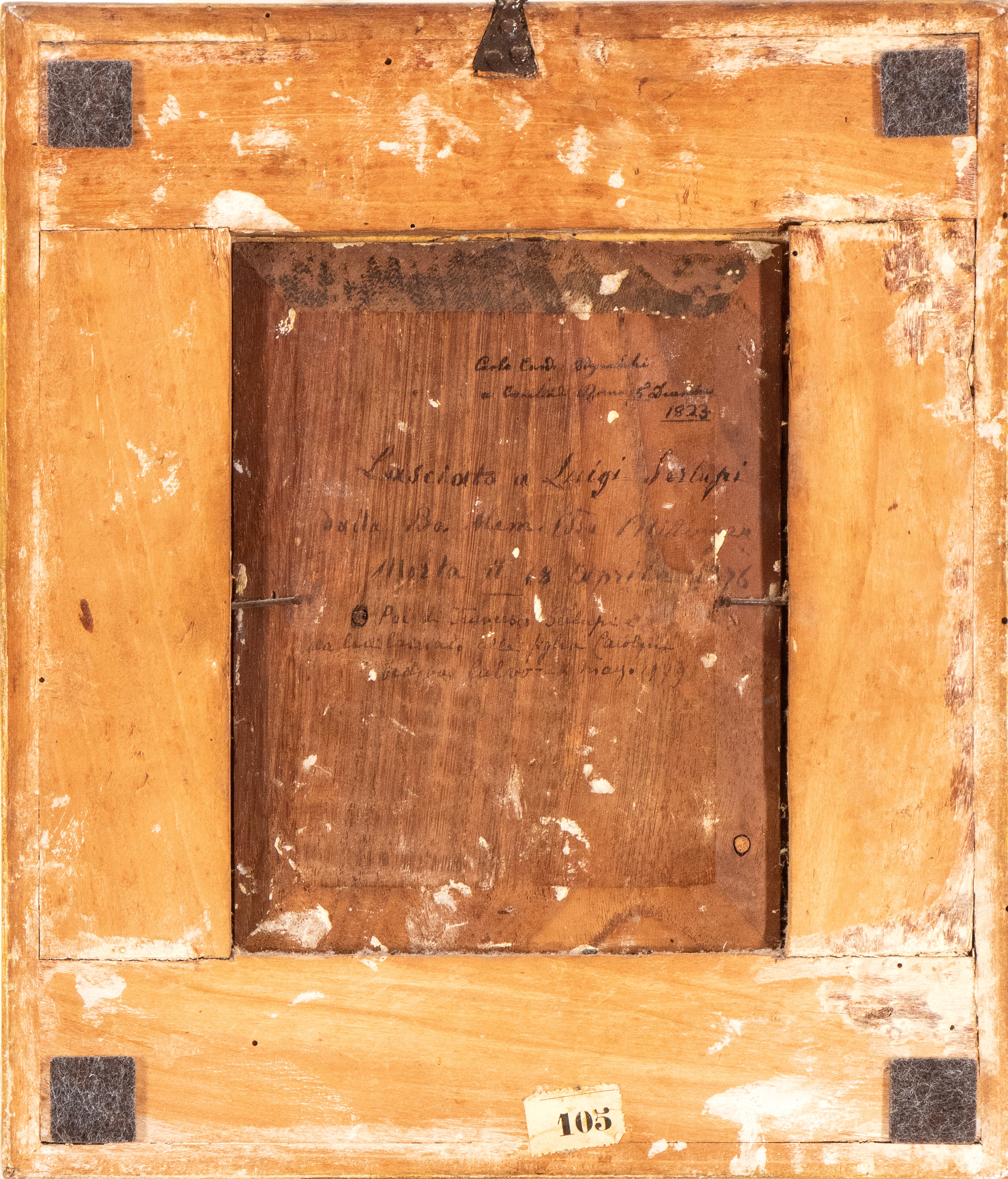 Altezza x larghezza tavola: 17 x 23 cm.; con cornice: 32 x 38 cm.