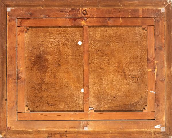 Altezza x larghezza x profondità con cornice: 102 x 127 x 10 cm. Altezza x larghezza tela: 84 x 103 cm.