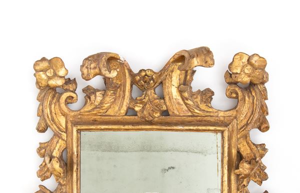 Specchiera in legno intagliato e dorato, Italia centrale, XVIII secolo