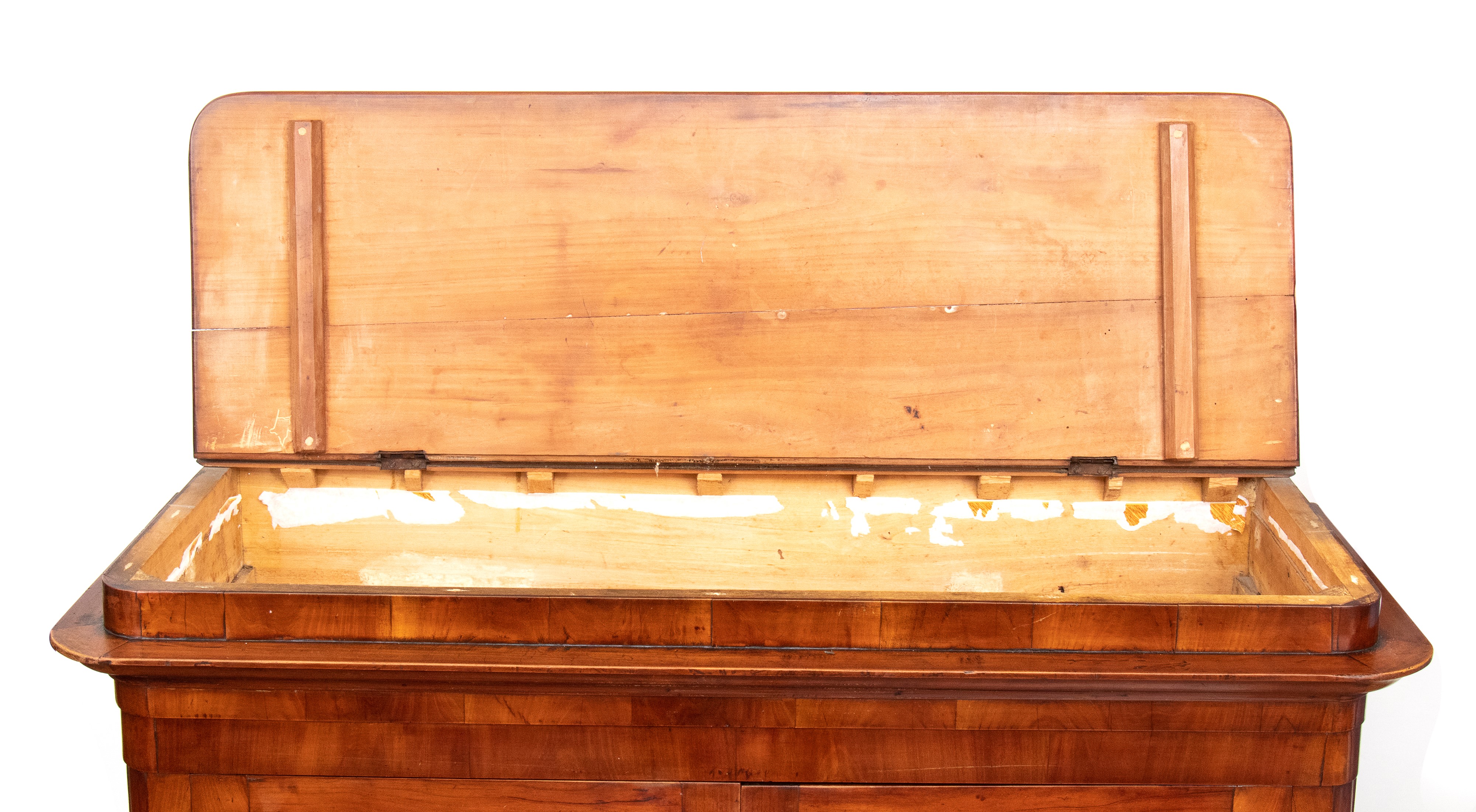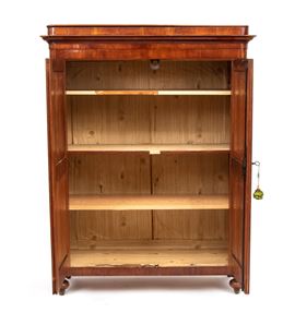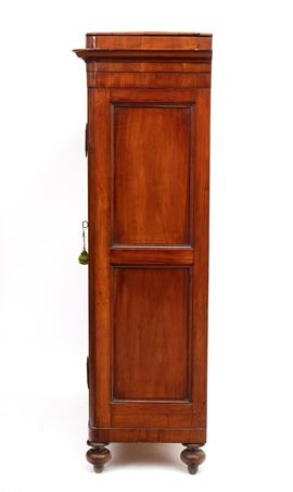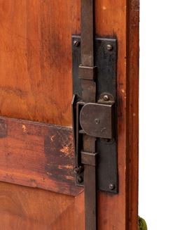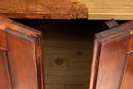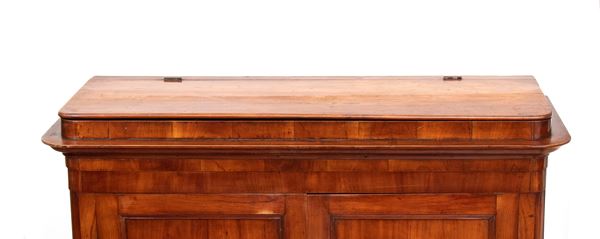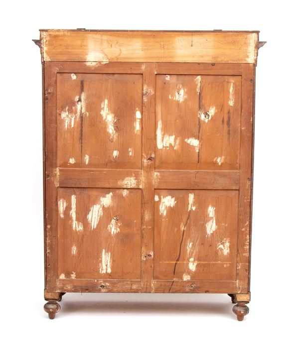 in legno di ciliegio, a due ante riquadrate con cornici semplici, poggiante su piedi torniti. Fascia superiore sporgente con piano che si alza con funzione per la lievitazione del pane.