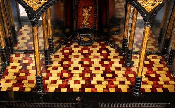 con struttura in ebano (Diospyros spp.) arricchito con inserti in osso e tartaruga (hawksbill sea turtle, Eretmochelys imbricata, Cheloniidae).