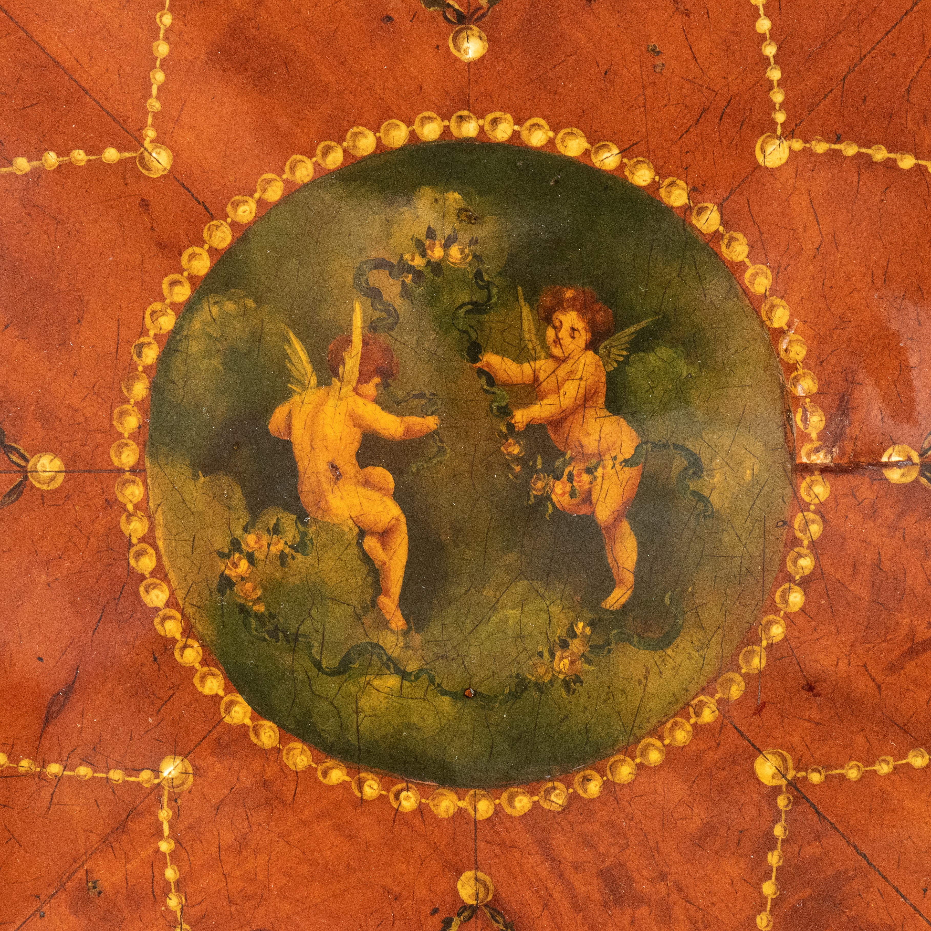 tardo periodo vittoriano con dipinti policromi, di forma tonda con dipinto centrale raffigurante due putti giocosi e bordi dipinti a motivi floreali.