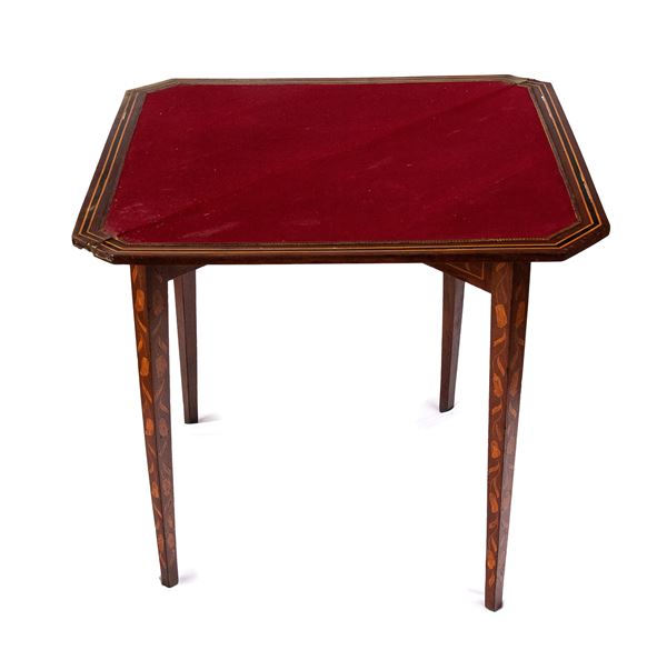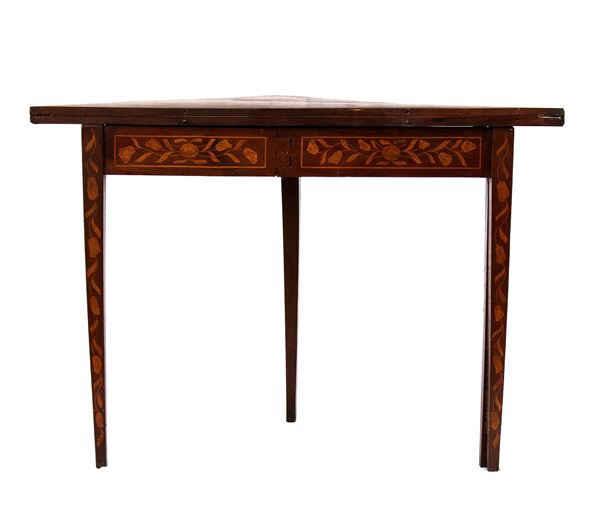 Tavolo da gioco olandese intarsiato, XIX secolo