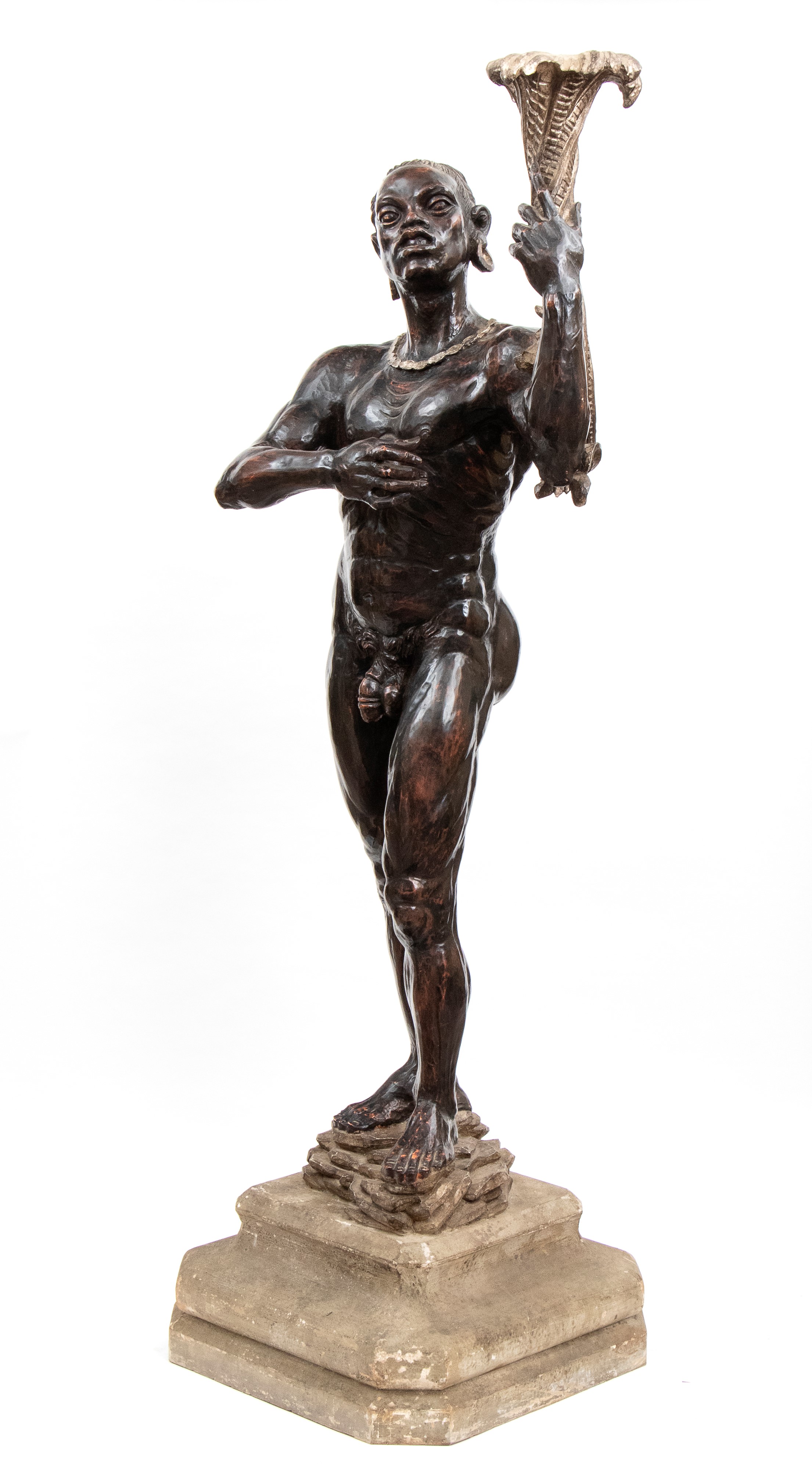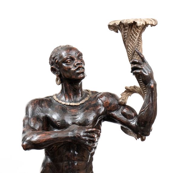 Torciere in legno a figura di moro in legno, Venezia, XIX secolo
