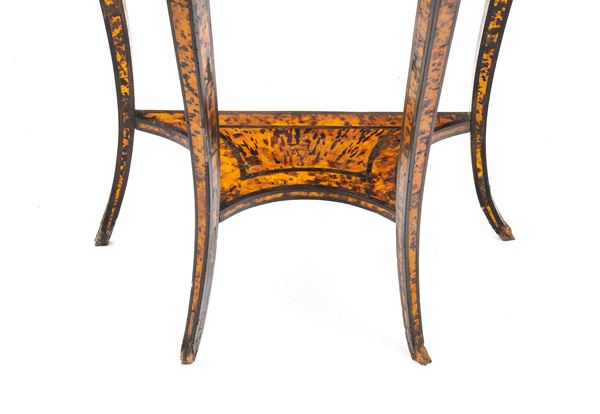 lastronata in tartaruga (hawksbill sea turtle, Eretmochelys imbricata, Cheloniidae), realizzata in Italia alla fine del XIX secolo. Si tratta di un raffinato arredo da esposizione, destinato a contenere oggetti preziosi o collezioni d’arte decorativa, tipico del gusto tardo-eclettico e dell’alta produzione artigianale italiana dell’epoca.