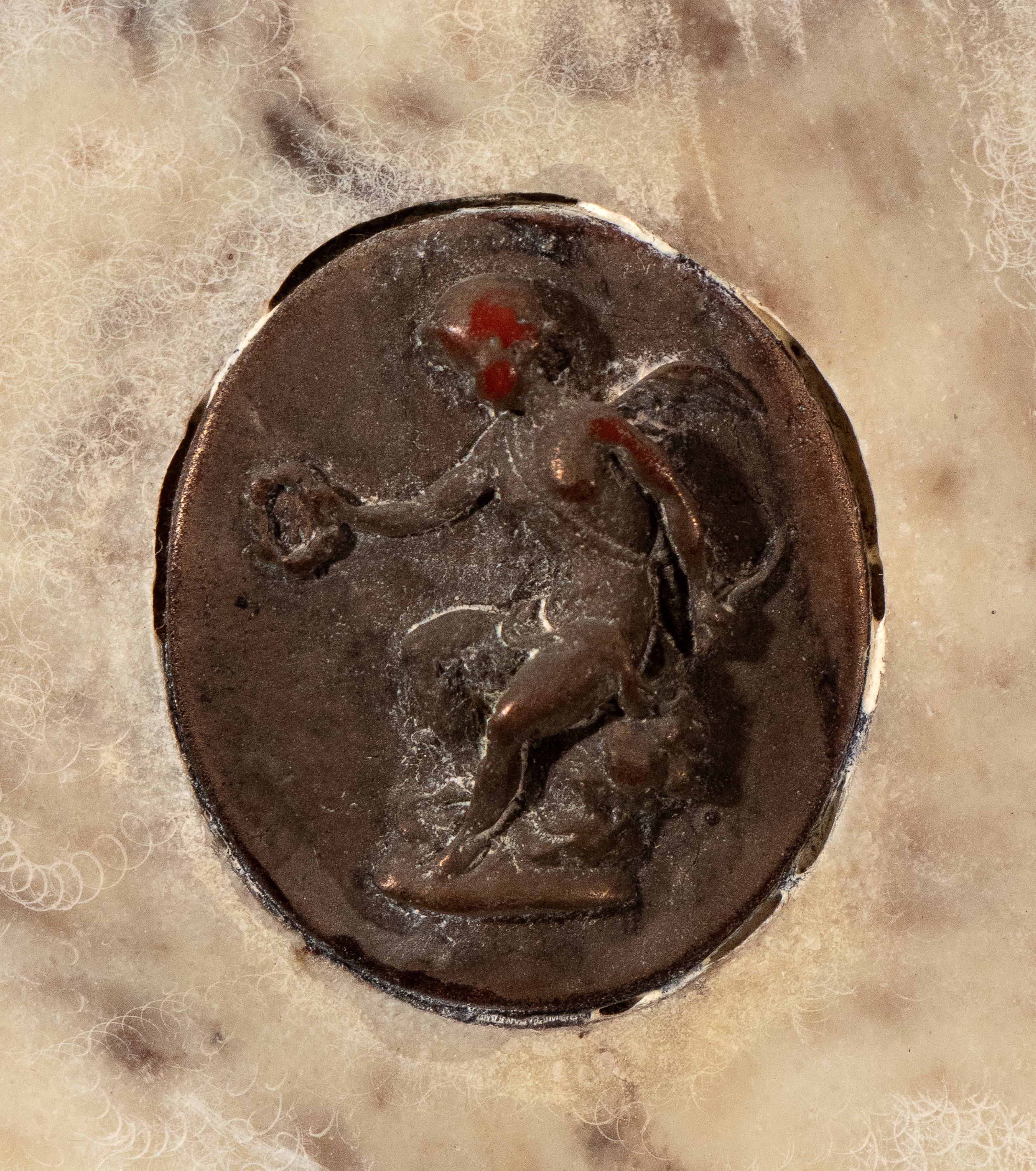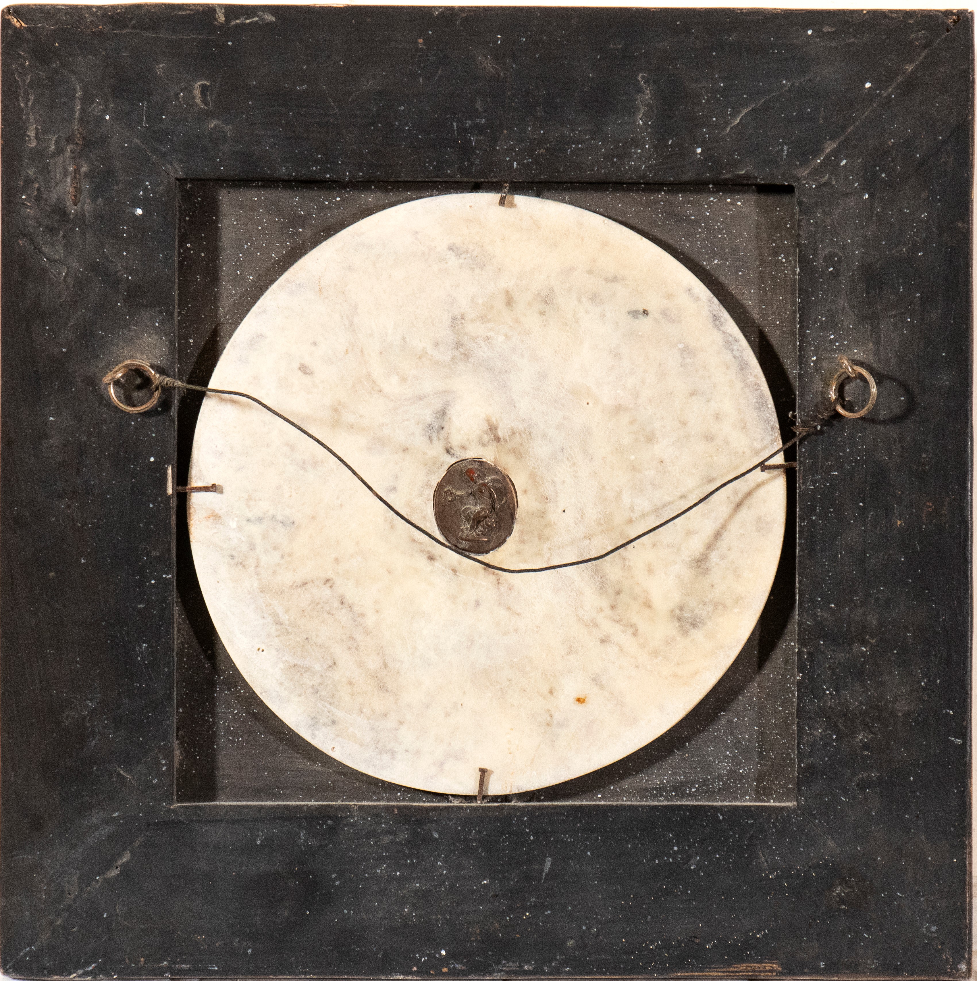 Altezza x larghezza cornice: 29 x 29 cm. Diametro marmo: 18 cm.