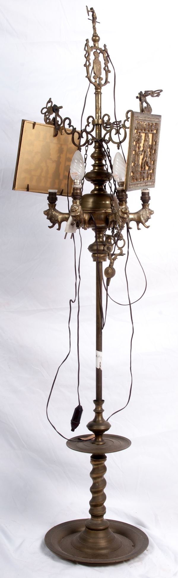 Realizzata in cuoio nero con applicazioni di ottone; in buono stato.