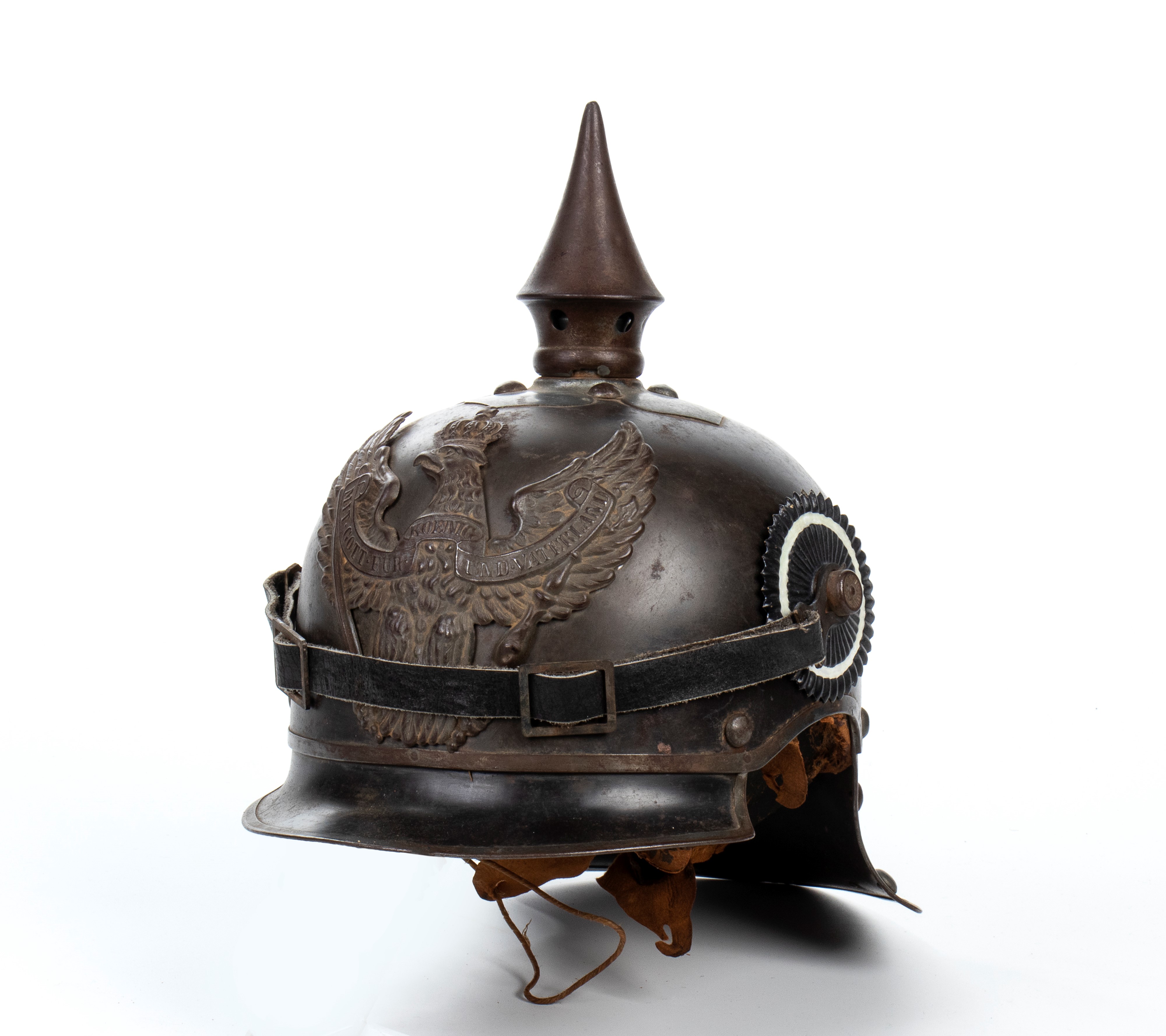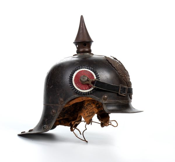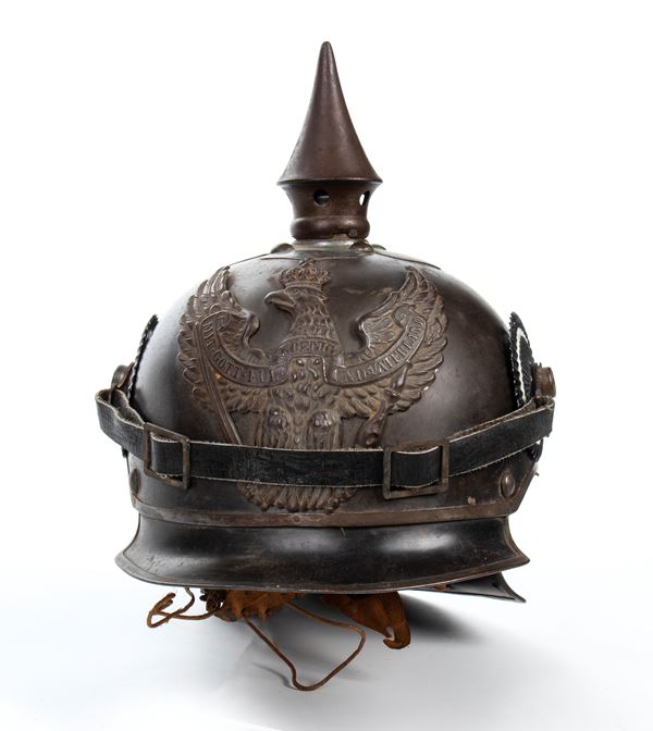 Elmo in ferro brunito con aquila imperiale, soggolo e coccarda; in ottimo stato.