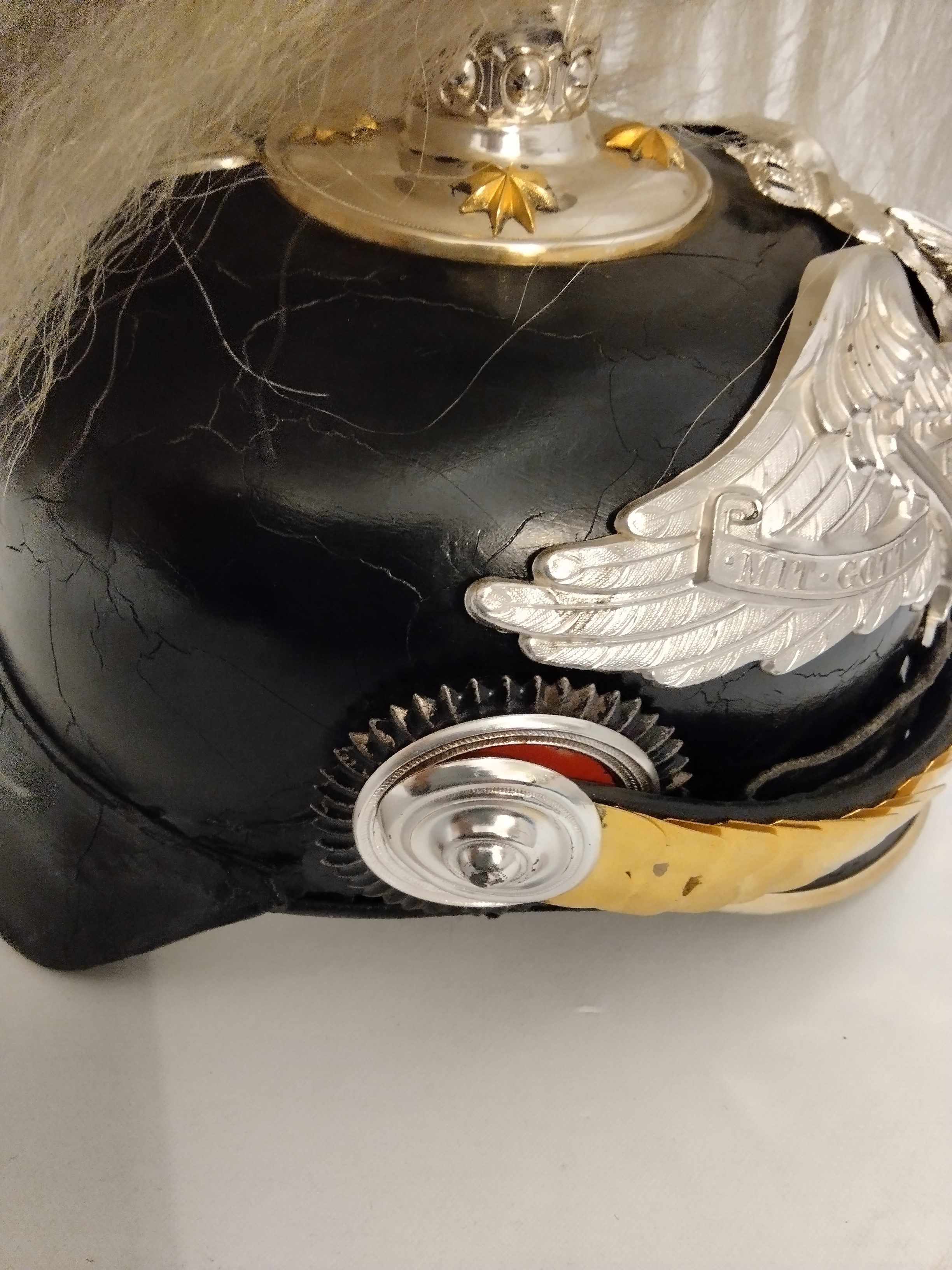 Pickelhaube per un ufficiale dei fucilieri della Guardia con arbush, ultimo quarto XIX sec.