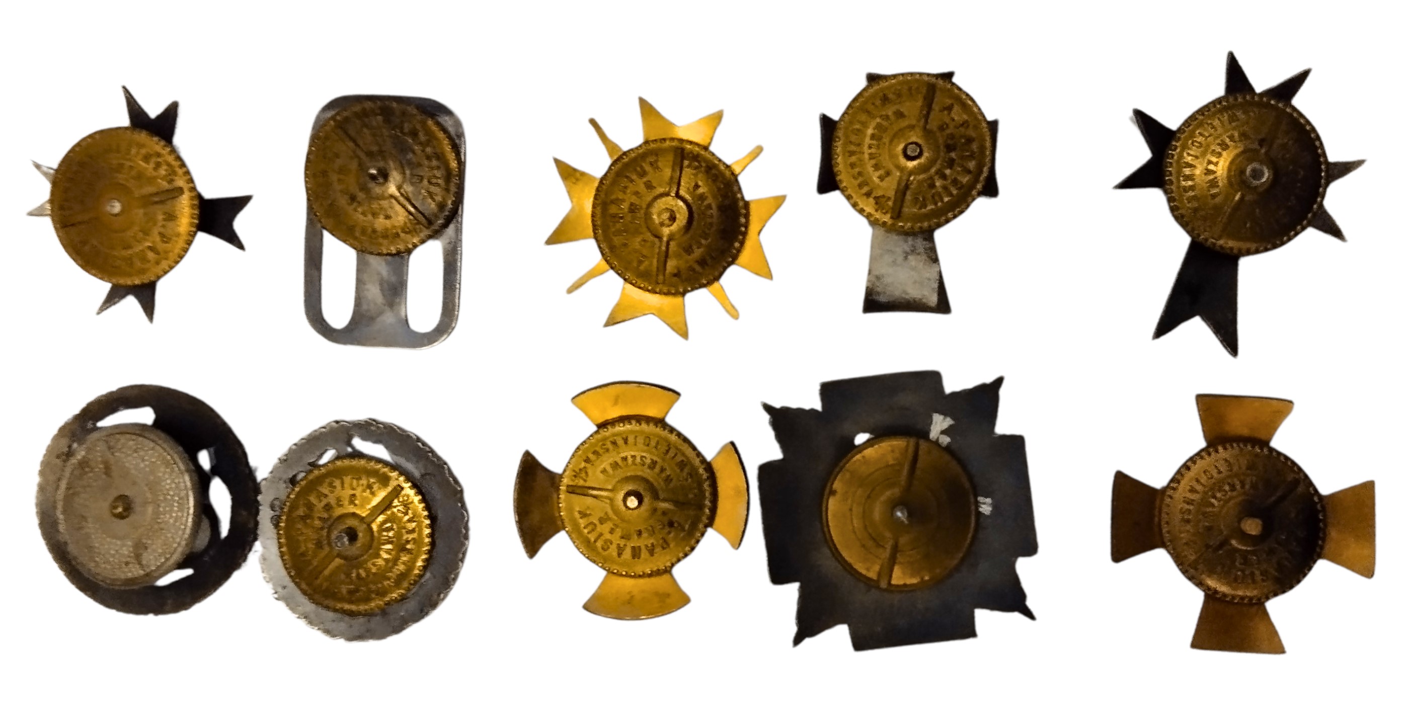 Lotto di dieci distintivi reggimentali, prevalentemente prodotti dalla ditta Panasiuk di Varsavia, metallo dorato e smalti policromi, al verso vite centrale e rondella con marchi del fabbricante; in ottimo stato e di ottima vecchia fattura.