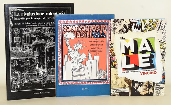 Controstoria degli USA di Nick Thorkelson e James O'Brein. A cura di Peppino Ortoleva. Riduzione Grafica di Giovanna Caronia e Vincino, Savelli, 1976. Volume in 4°. Fumetto.