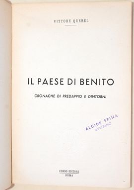 Querèl, Vittore: Il Paese di Benito, Corso Editore, 1954. Brossura. Prima edizione.