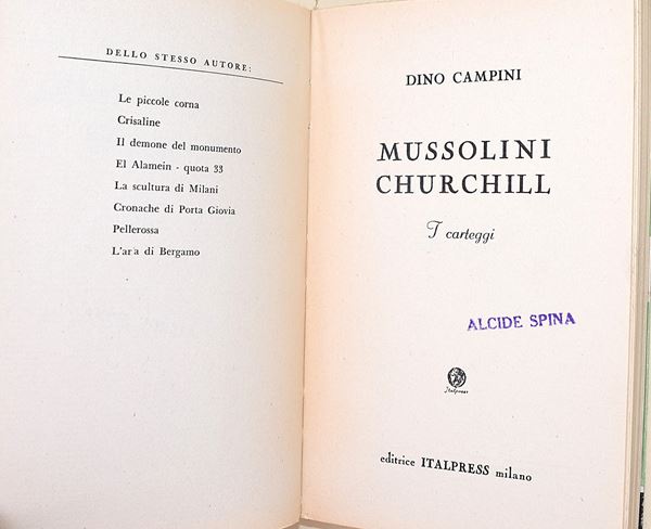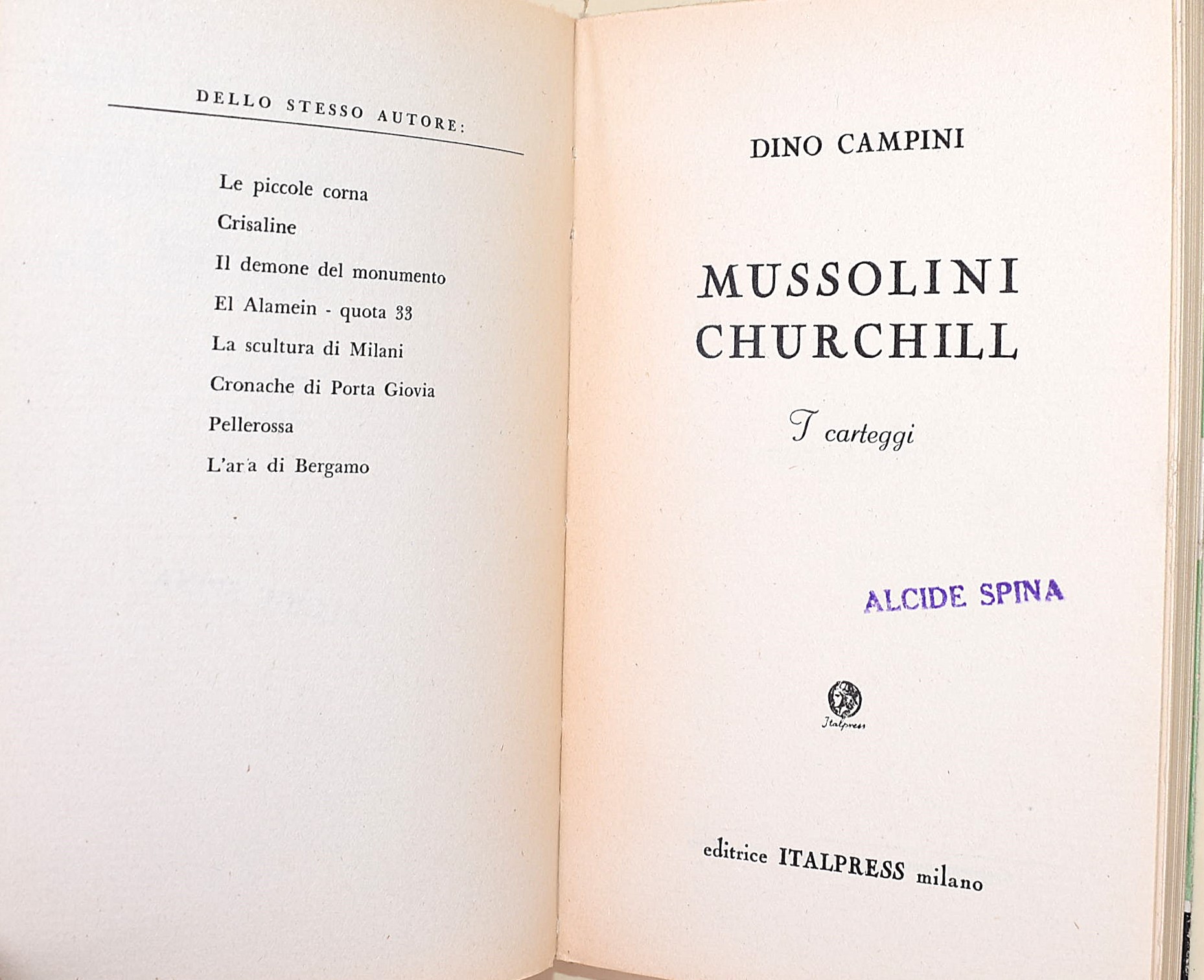 Campini, Dino: Mussolini Churchill, I Carteggi, Editrice Italpress, s.d. Brossura.