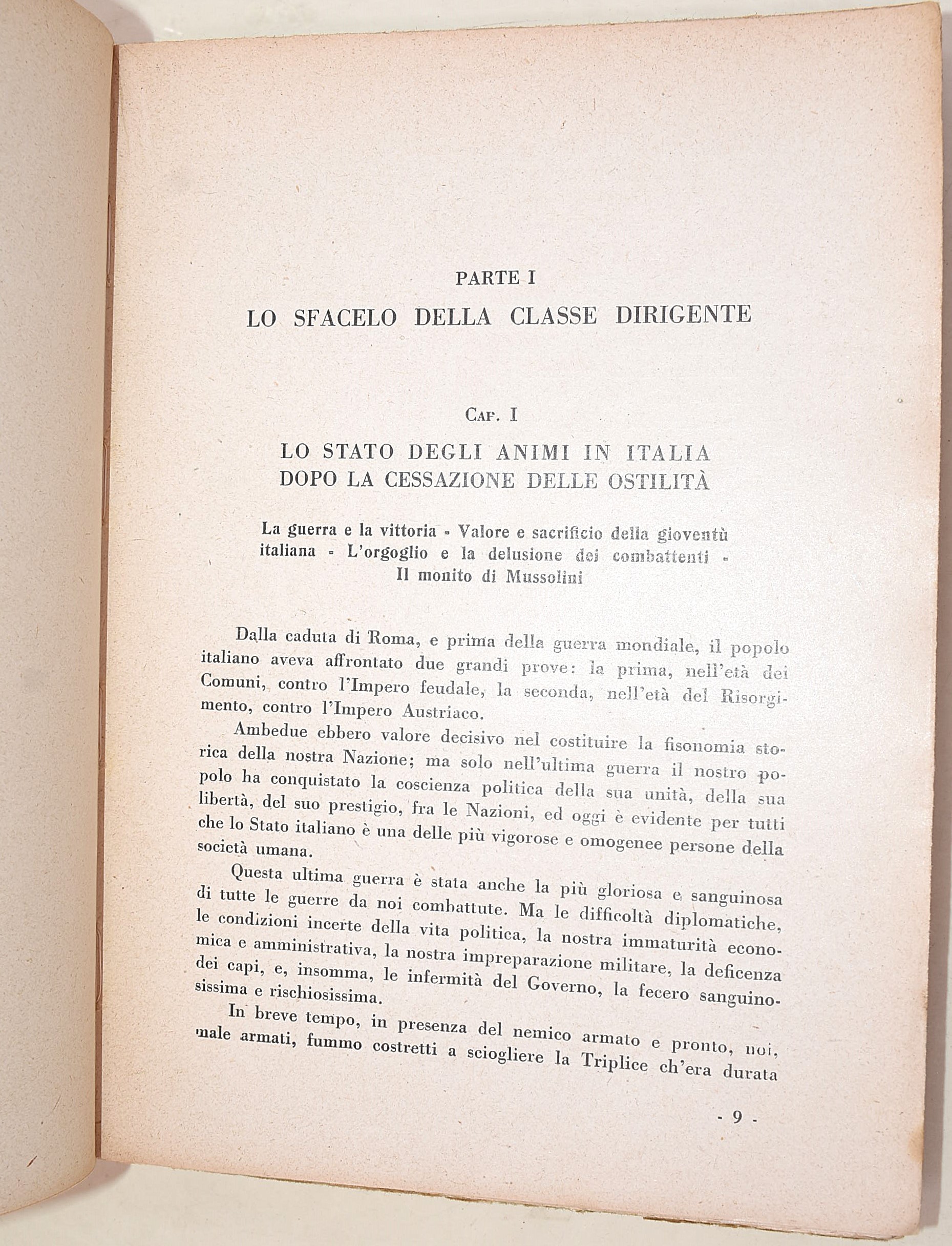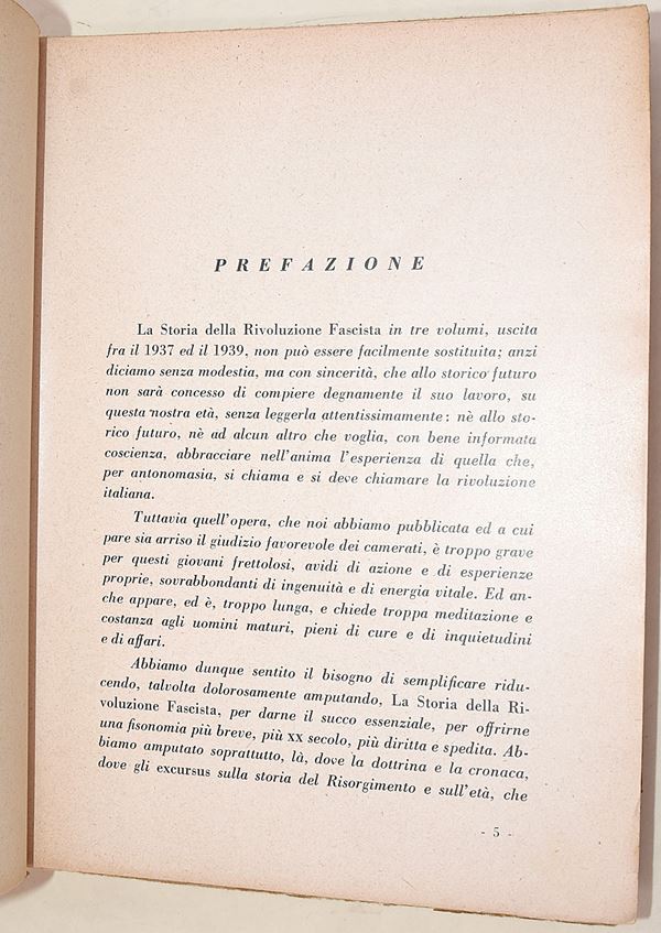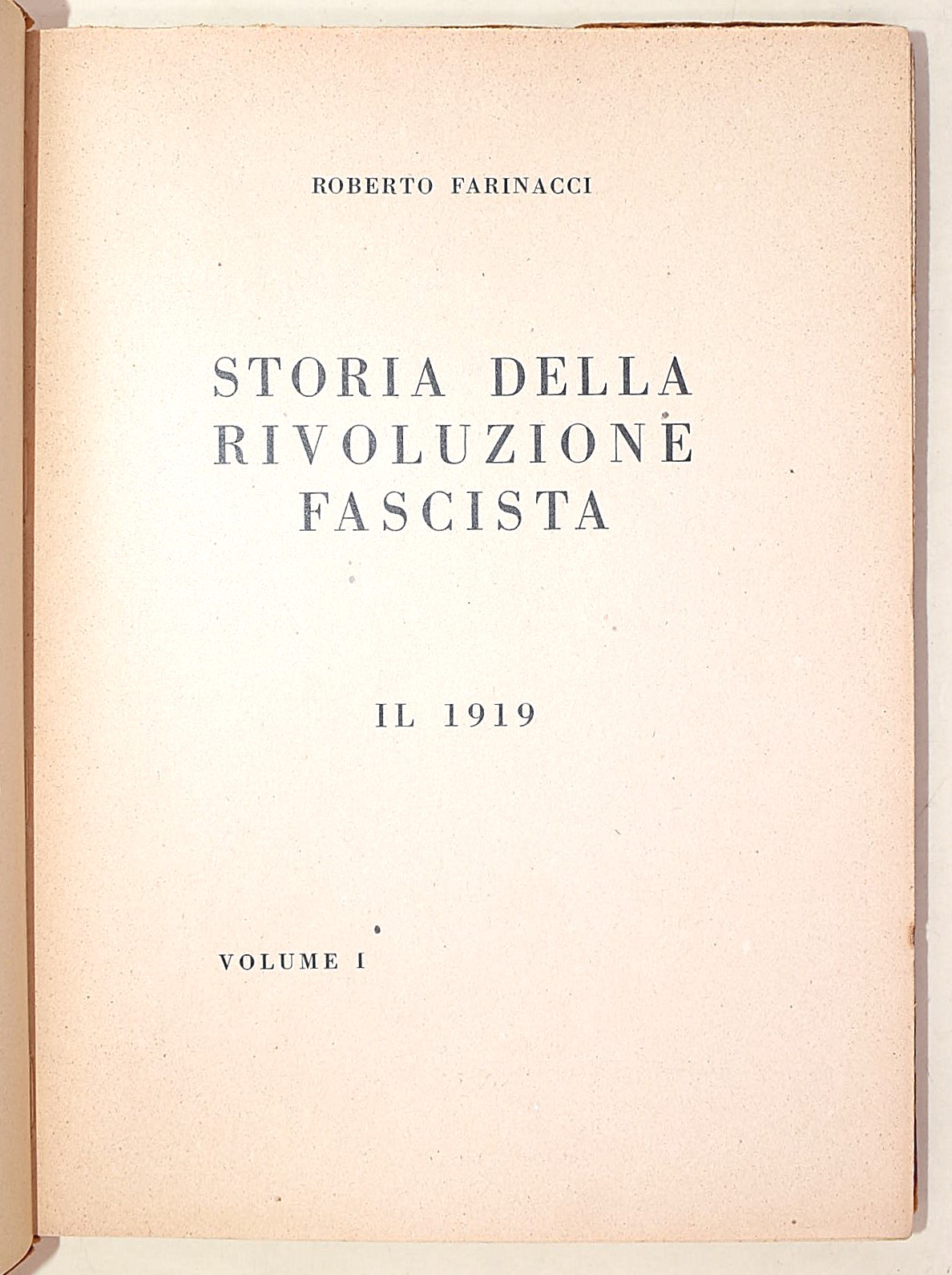 Farinacci, Roberto: Storia della Rivoluzione Fascista, Cremona Nuova, 1937-XV. In 3 volumi: I) Il 1919 II) L'Insurrezione Rossa e la Vittoria dei Fasci III) La Marcia su Roma. Brossura. Ex libris al contropiatto.