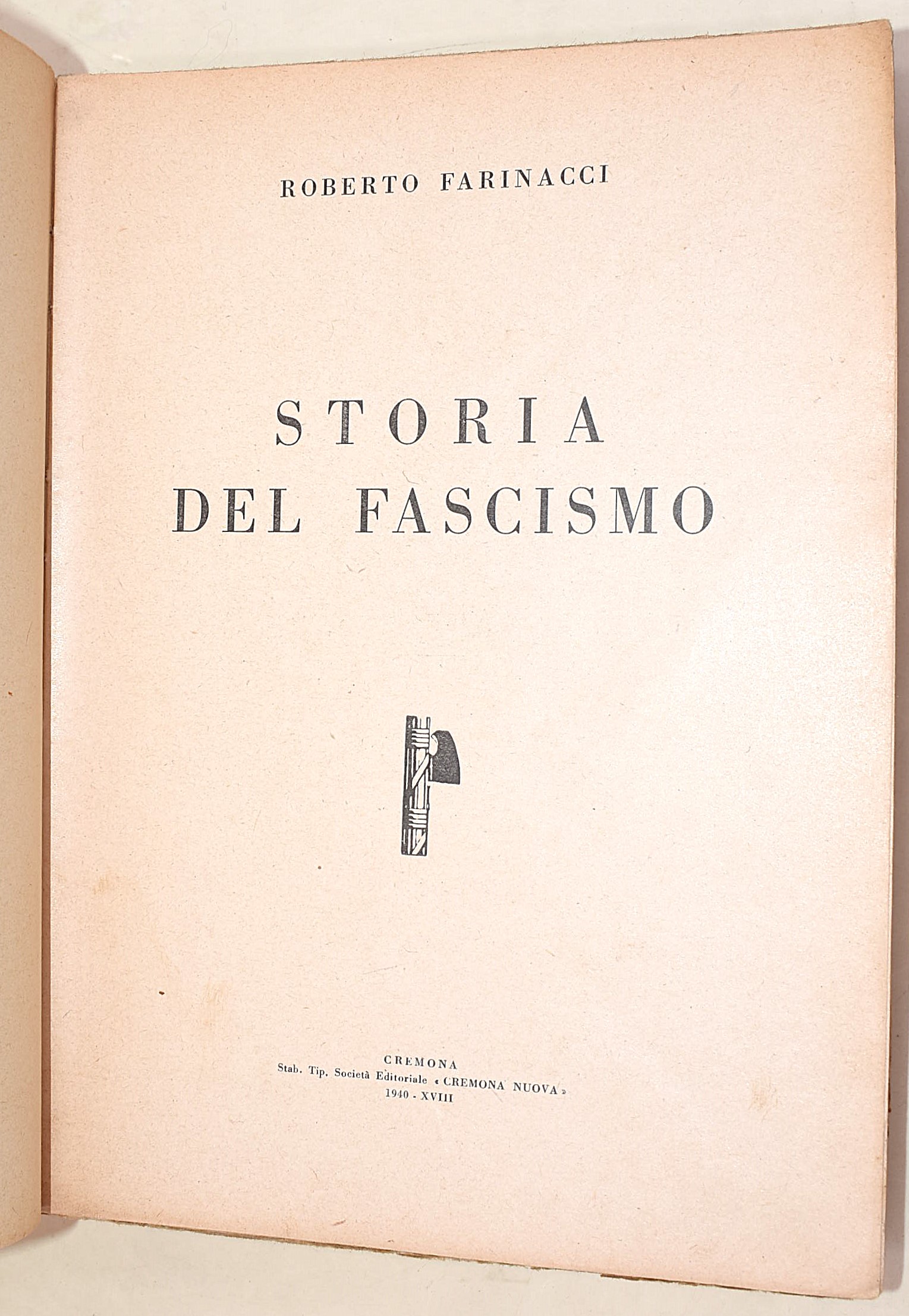 Farinacci, Roberto: Storia del Fascismo, Cremona Nuova, 1940-XVIII. Brossura. Ex libris al contropiatto.