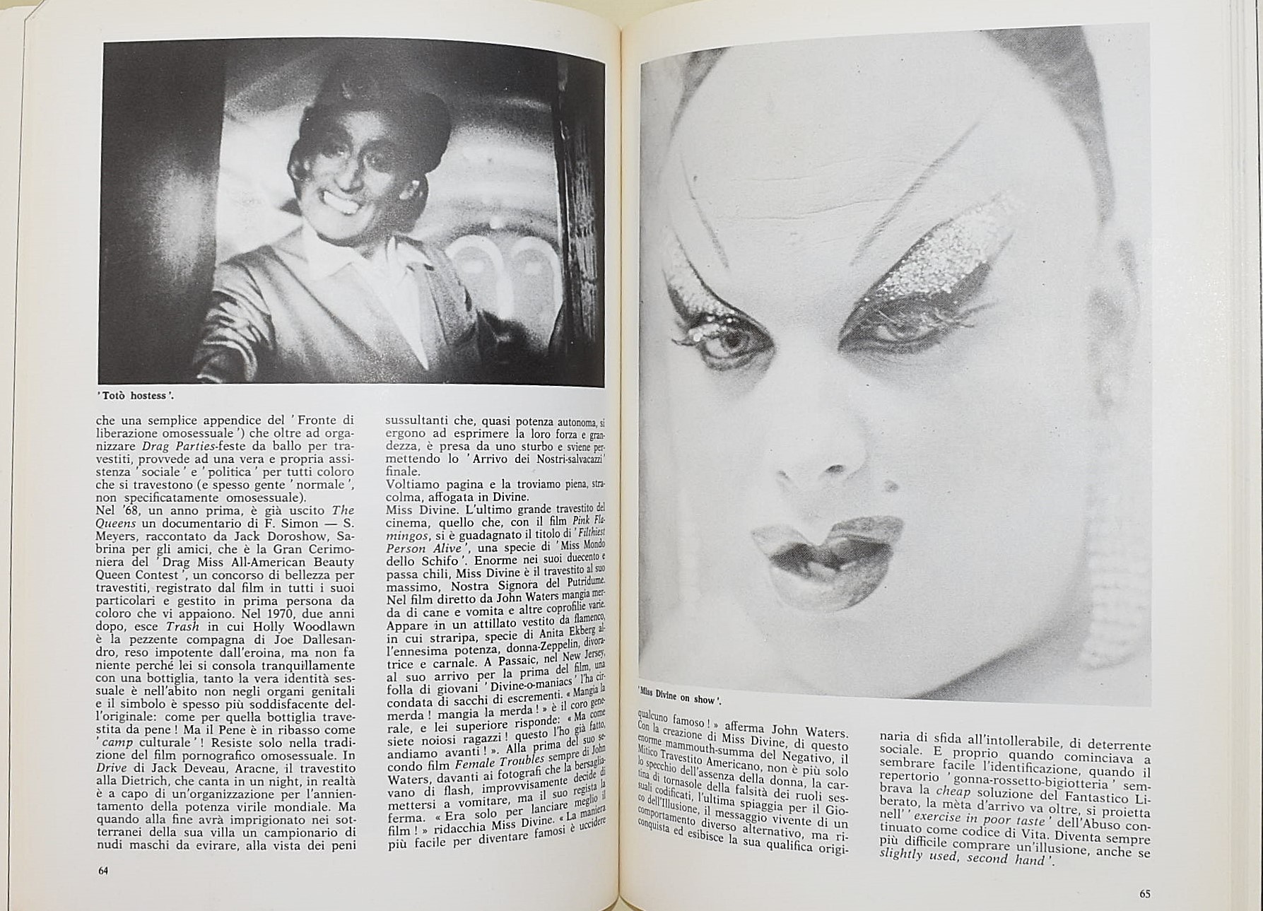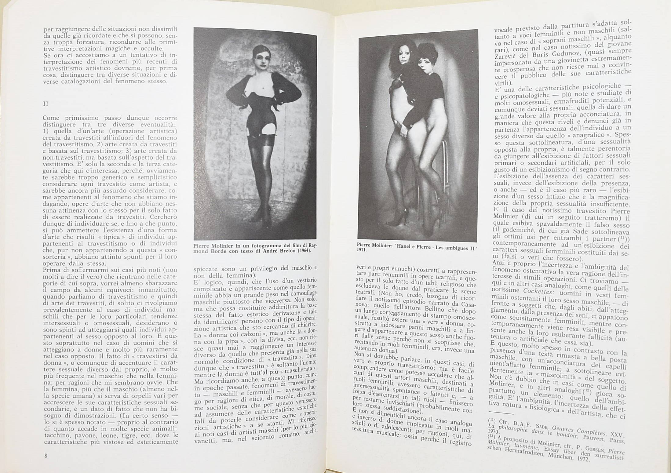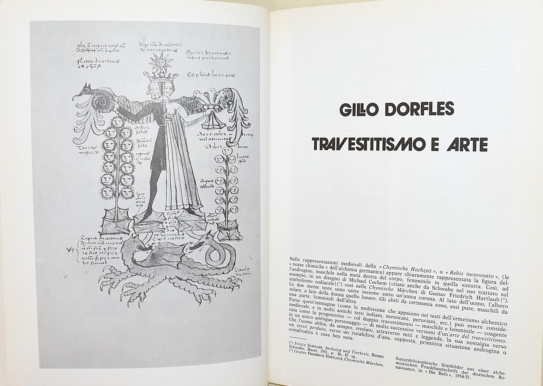 Gli uni & Gli altri. Travestiti e travestimenti nell'arte, nel teatro, nel cinema, nella musica, nel cabaret e nella vira quotidiana. A cura di Gillo Dorfles, Giovanni Buttafava, Gianni Romoli, Peppo Delconte, Carlo Romano, Arcana Editrice, 1976. Volume in 4°: Brossura. Edizione illustrata.