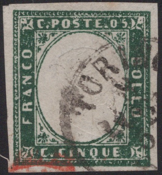 1857 - 5 cent. verde mirto n.13A, splendido. Cat.1.000. (LUX)