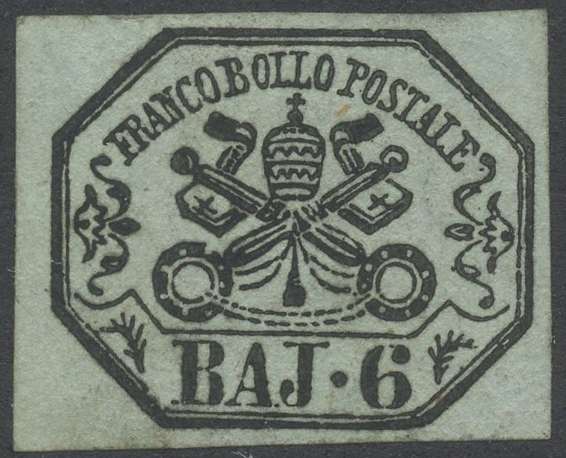 1852 - 6 baj grigio azzurrastro nuovo con gomma, linguellato. Cat. 3.500. (A)
