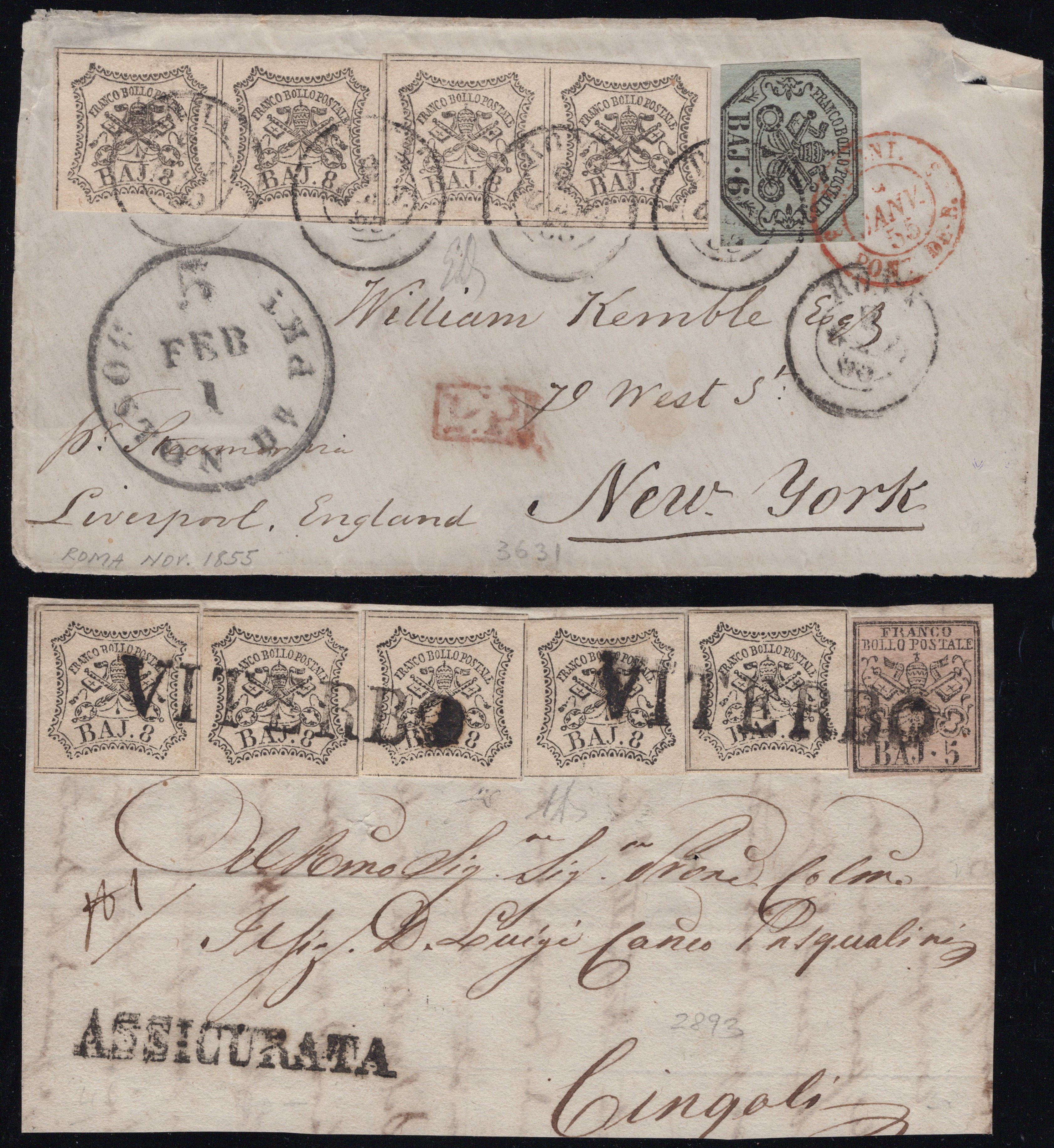 1852 - Due fronti di lettera con interessanti affrancature. Tutti i francobolli molto ben marginati e ben conservati. (A+) (Emilio Diena, Alberto Diena)