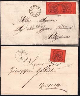 1867 - Insieme composto da numerosi oggetti postali appartenenti alla II e alla III emissione conservati in due album. Da esaminare attentamente.