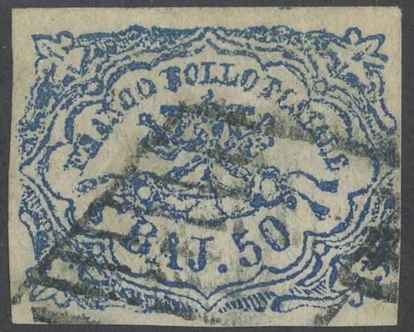 1852 - Busta Raccomandata da Roma per Napoli affrancata per 63 baj. tramite un 50 baj. n.10 + 8baj. n.9 + 5baj. n.6, tutti molto ben marginati, il 50baj. con bordo di foglio in alto. (A+) (Emilio Diena per esteso, Alberto Diena)