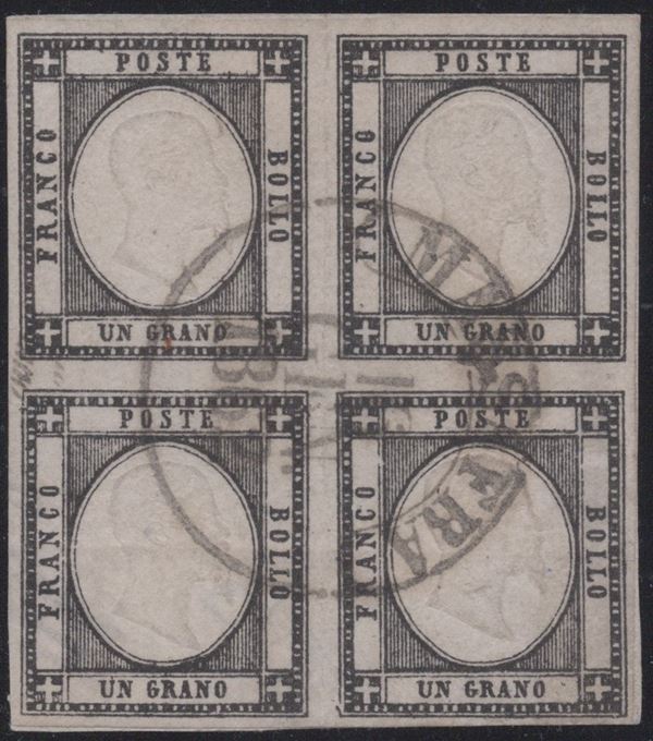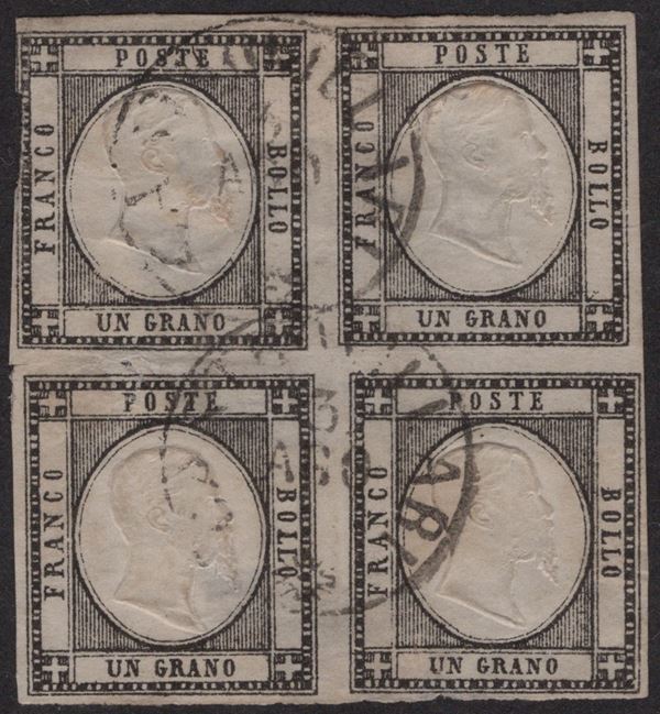 1861 - 1/2 torn. n.17, blocco di quattro in una interessante tonalità di colore. (A+)