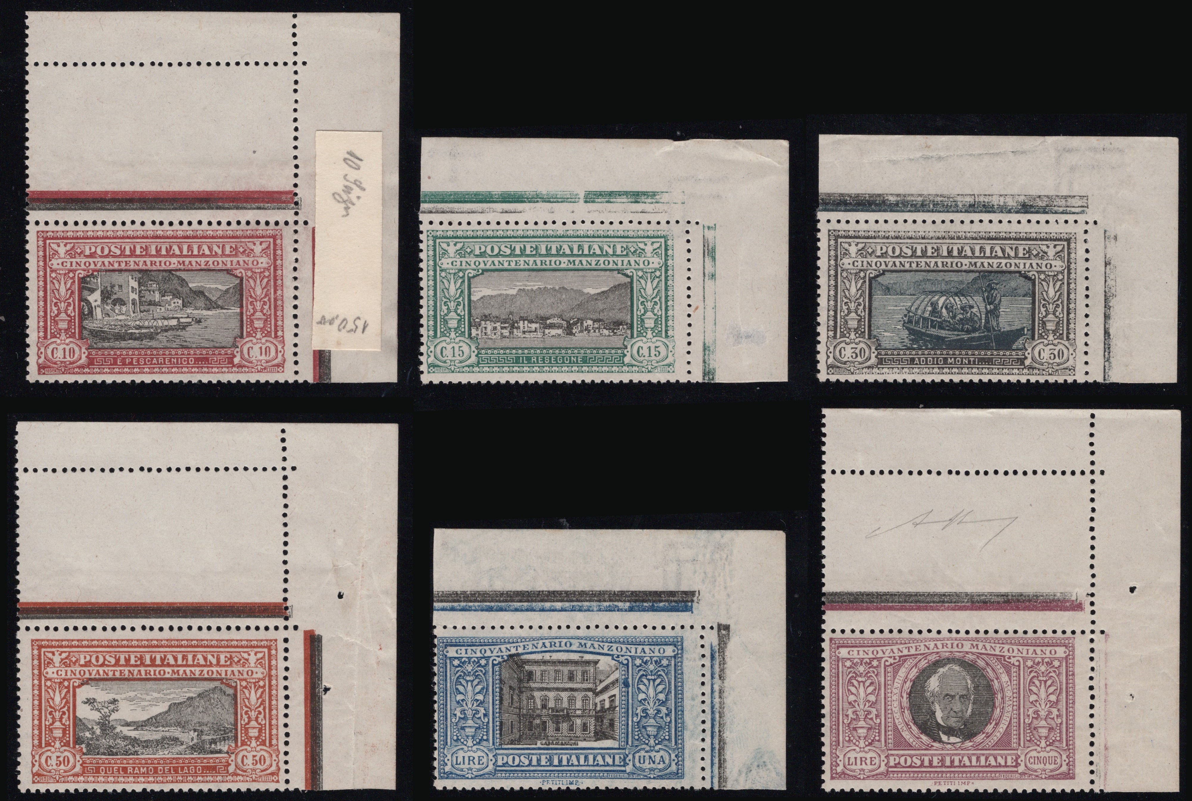 1923 - Manzoni n.151/156 tutta angolo di foglio sup. destro, nuova con gomma integra. Splendido insieme.