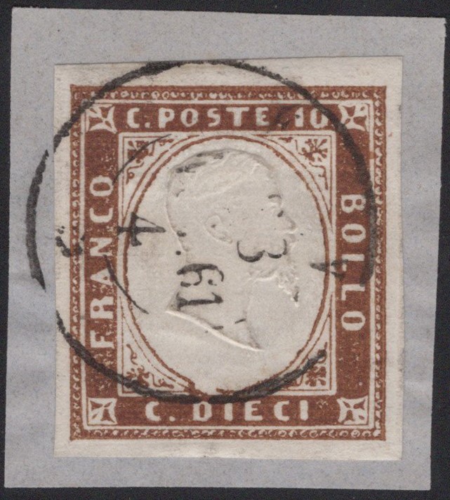 1861 - 10 cent. bruno cioccolato scuro della II tavola n.14Ci, usato e conservato su frammento. Splendido. Cat. 2.150++. (LUX)