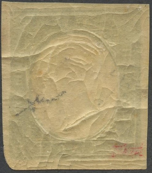 1854, 5 cent. verde oliva scuro nuovo, con gomma ''Crackle'', firmato chiavarello. Cat. 11.000. (A) (Chiavarello)