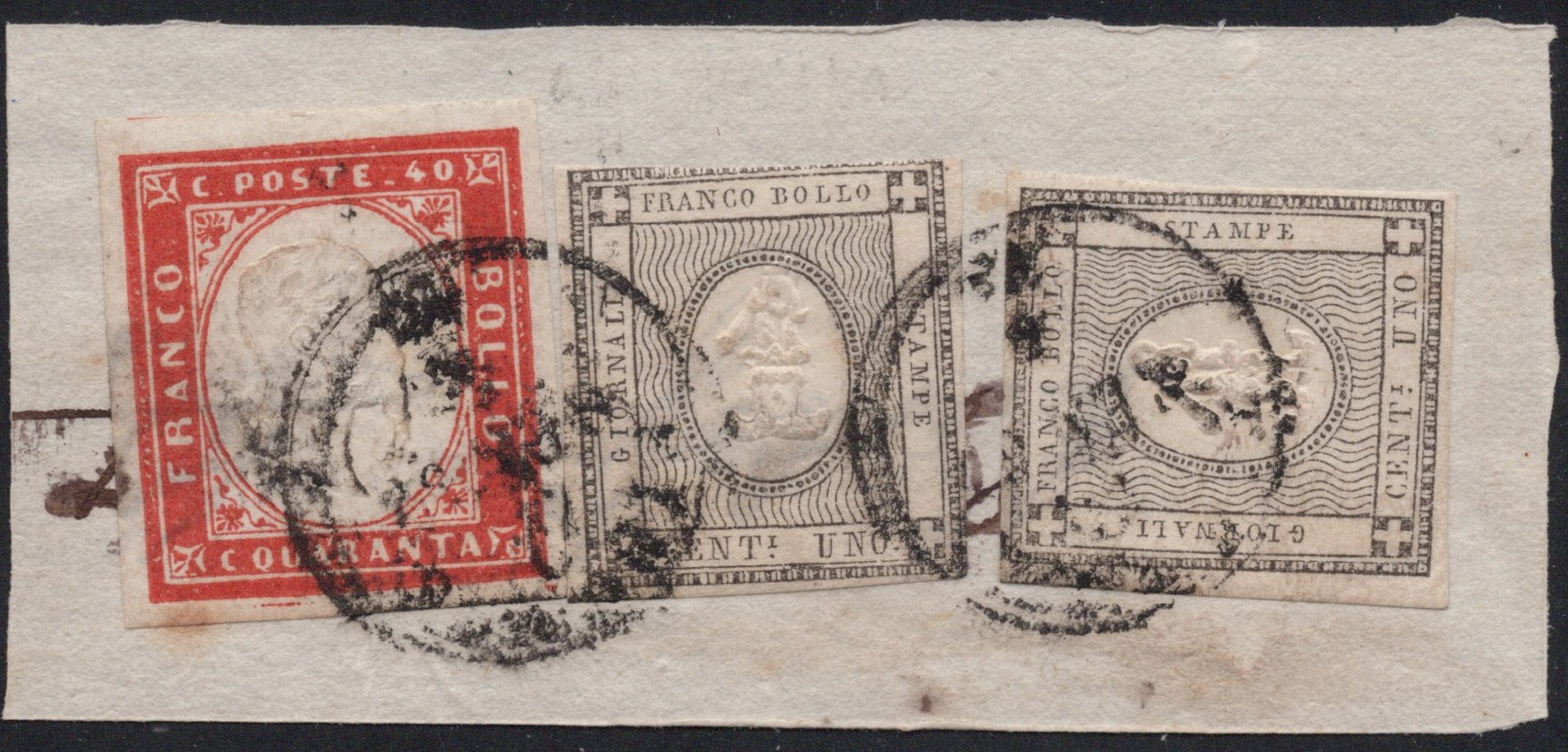 1861 - 40 cent. IV emissione + 1 cent. per le stampe x2. Interessante combinazione.