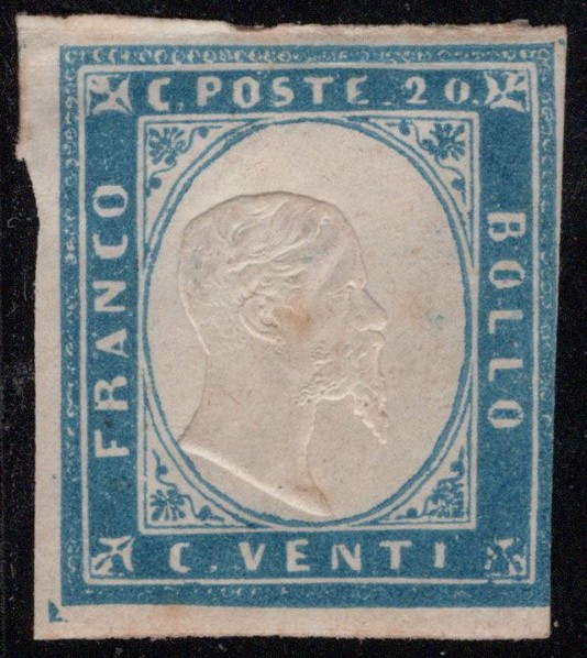 Sardegna - IV emissione, 20 cent. celeste tiratura del 1855, nuovo con gomma, MH