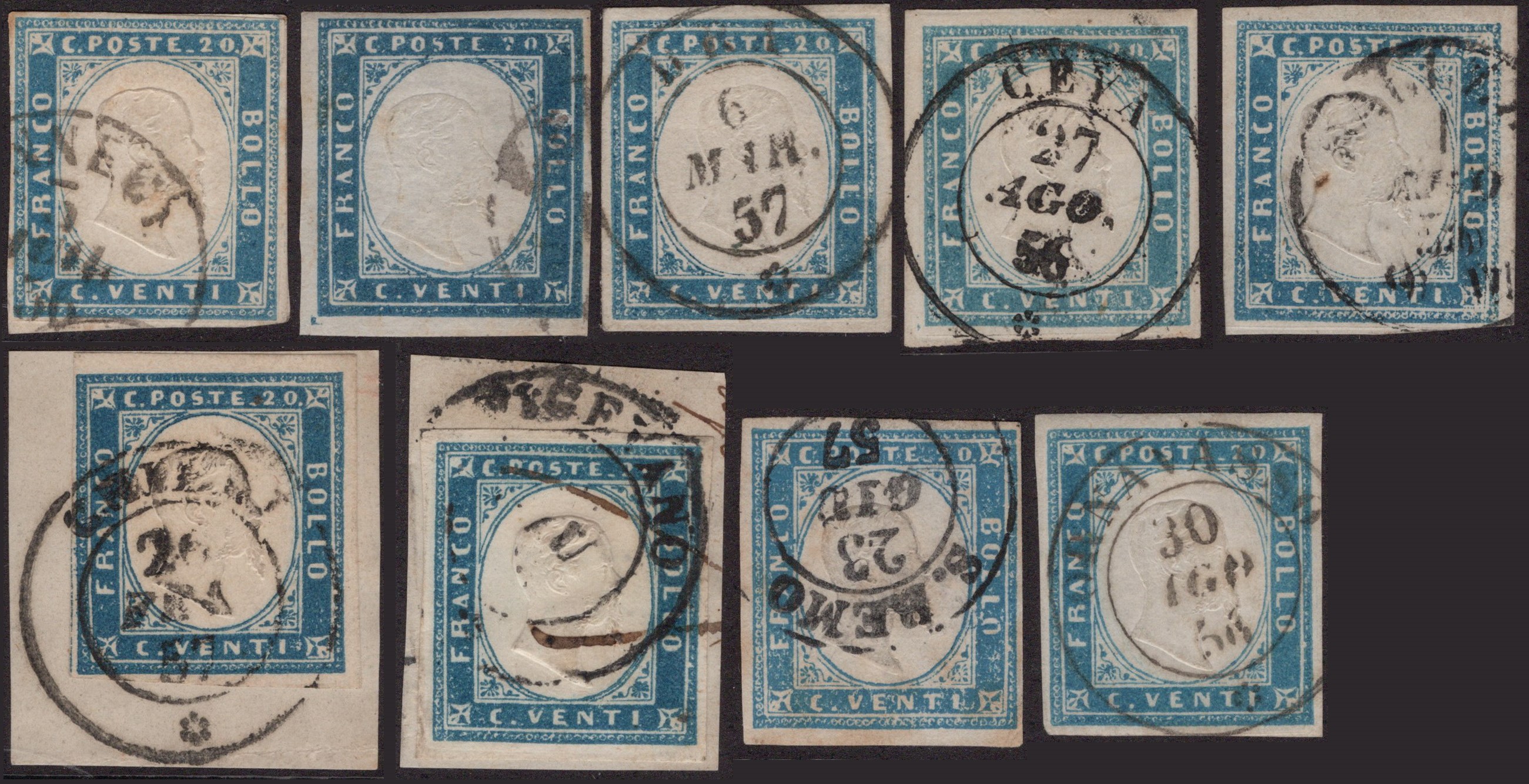 Sardegna - IV emissione, 20 centesimi, 9 esemplari della prima tiratura.