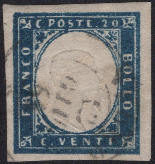 1861 - 20 cent. cobalto verdastro scuro n.15Df, molto bello e ben marginato. Cat.1.200. (A+)