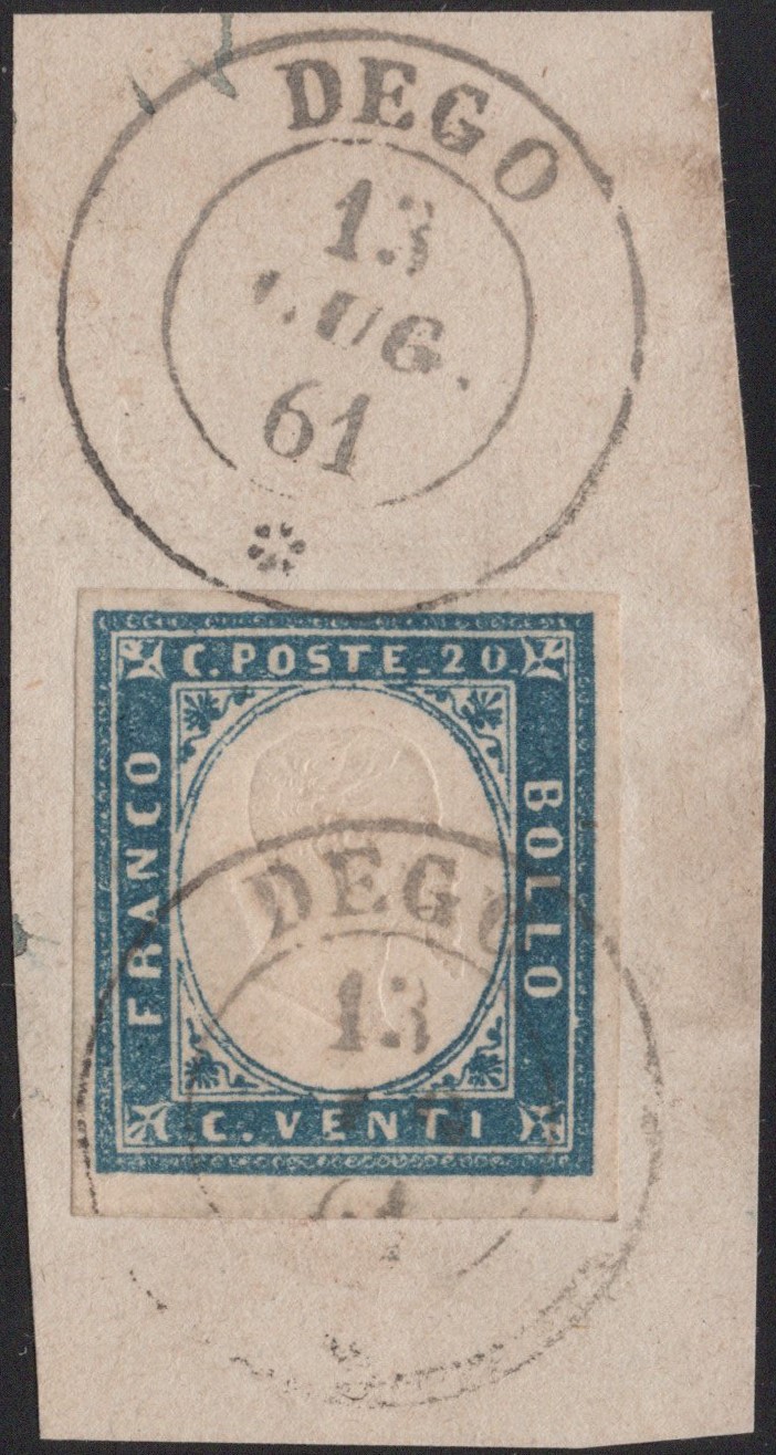 1861 - 20 cent. Cobalto Grigiastro n.15Dd usato a DEGO (pt.7 ). Insieme Splendido e non comune. (LUX)