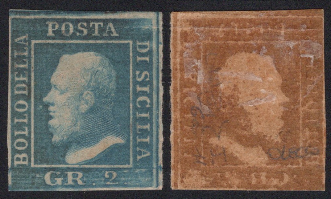 Sicilia - 2gr. I tav. Carta di Napoli con inchiostro oleoso, nuovo con gomma.