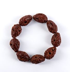 Bracciale in nocciolo di oliva intagliata, Cina, dinastia Qing, XIX secolo