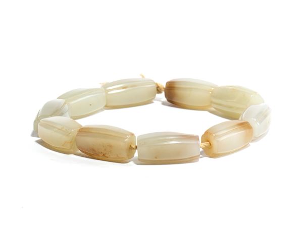 Collana in giada decorata a leggero rilievo con motivi geometrici.