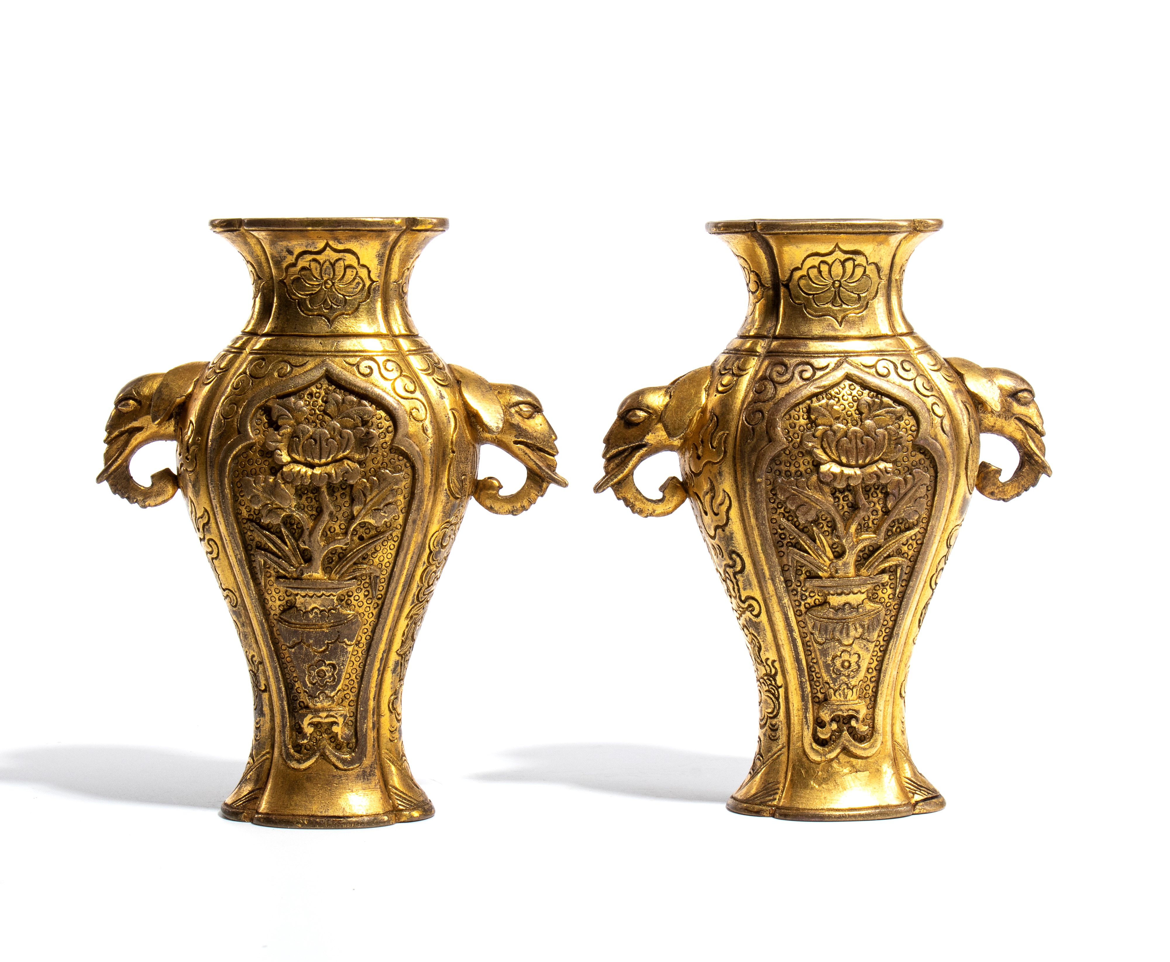 Coppia di vasi in oro laminato, Cina, Dinastia Qing, XIX secolo
