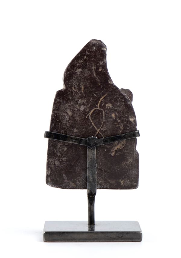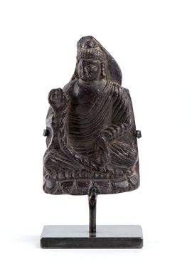 Figurina in pietra con sostegno raffigurante Bodhisattva seduto.