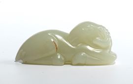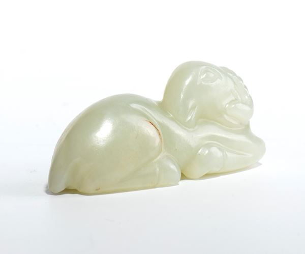 Intaglio in giada bianca raffigurante una pecora.