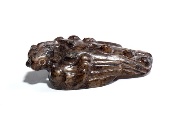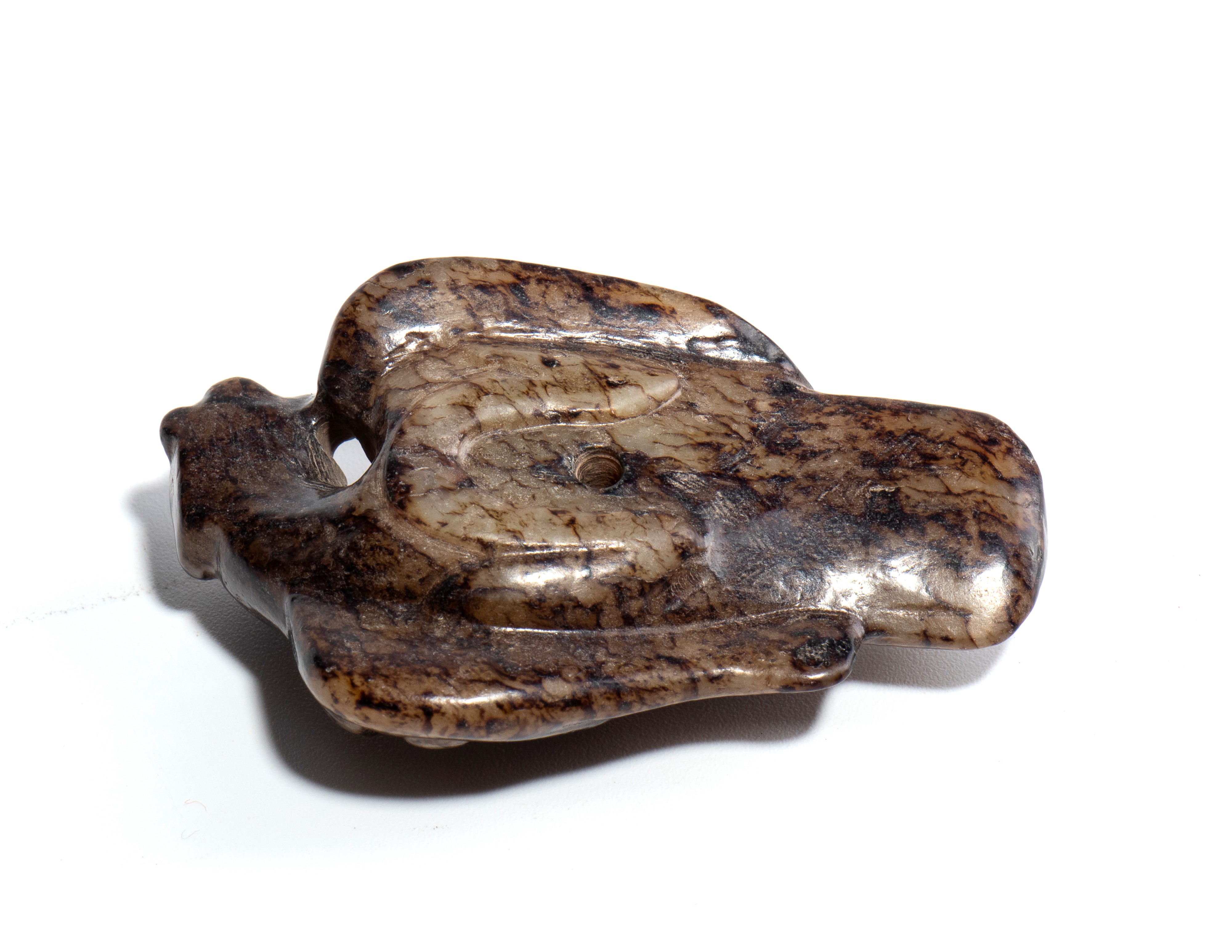 intaglio in giada raffigurante un uccello mitologico, simbolo di ricchezza e potere.