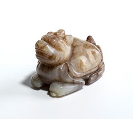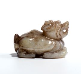 Intaglio in giada raffigurante una creatura mitologica con un guscio di tartaruga sulla schiena.