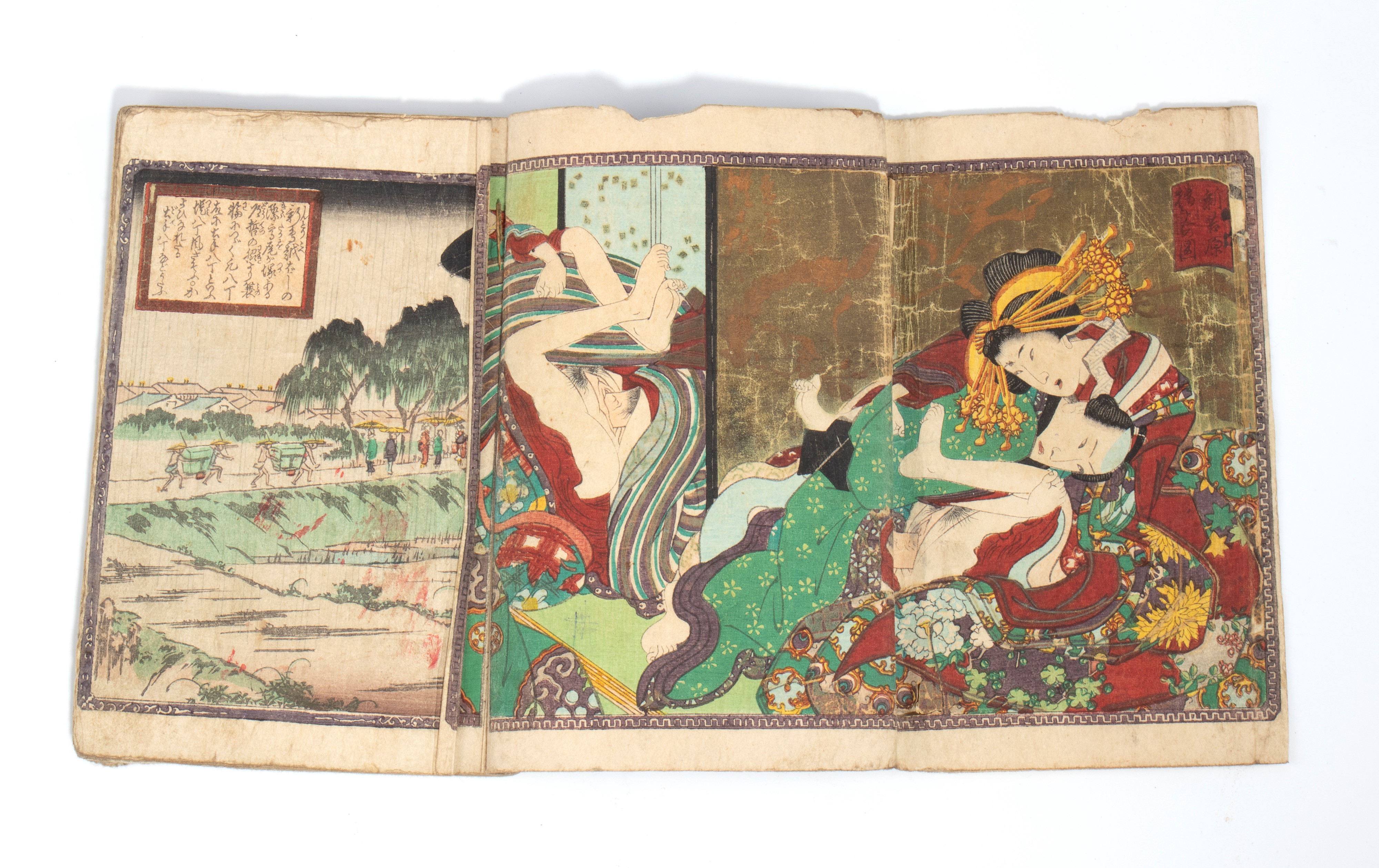 Un libro erotico shunga di Utagawa Kunisada, probabilmente appartenente alla serie Shiki no sugatami (Osservazione delle forme nelle quattro stagioni).