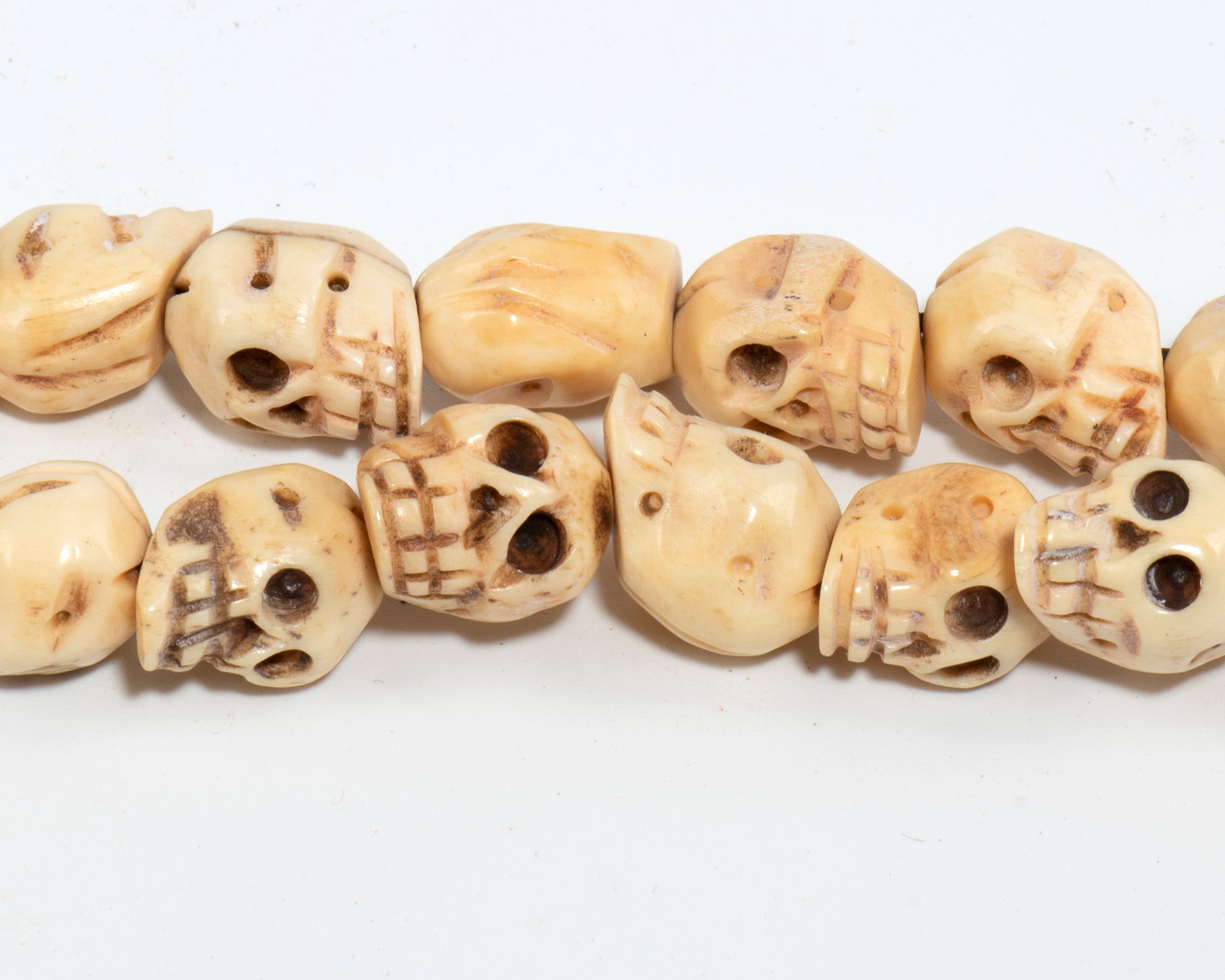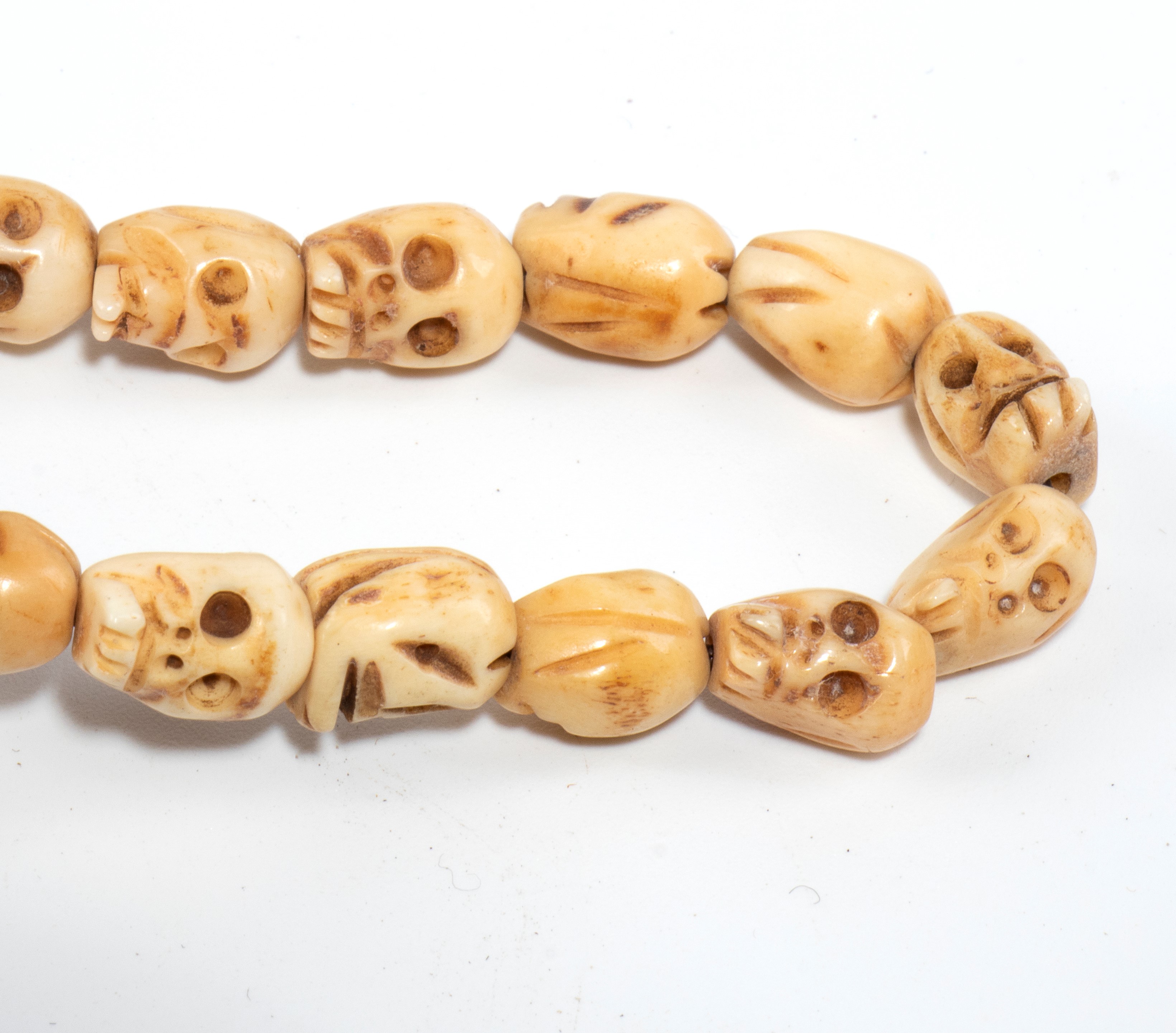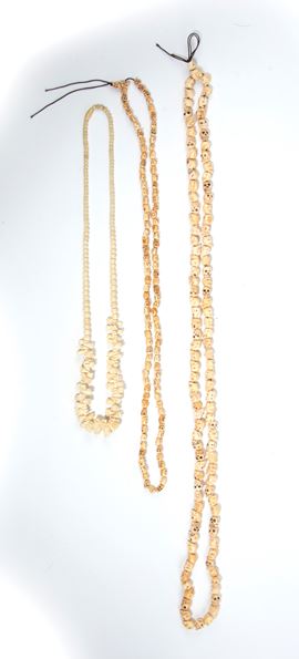 Lotto di tre collane con teschi in osso.
