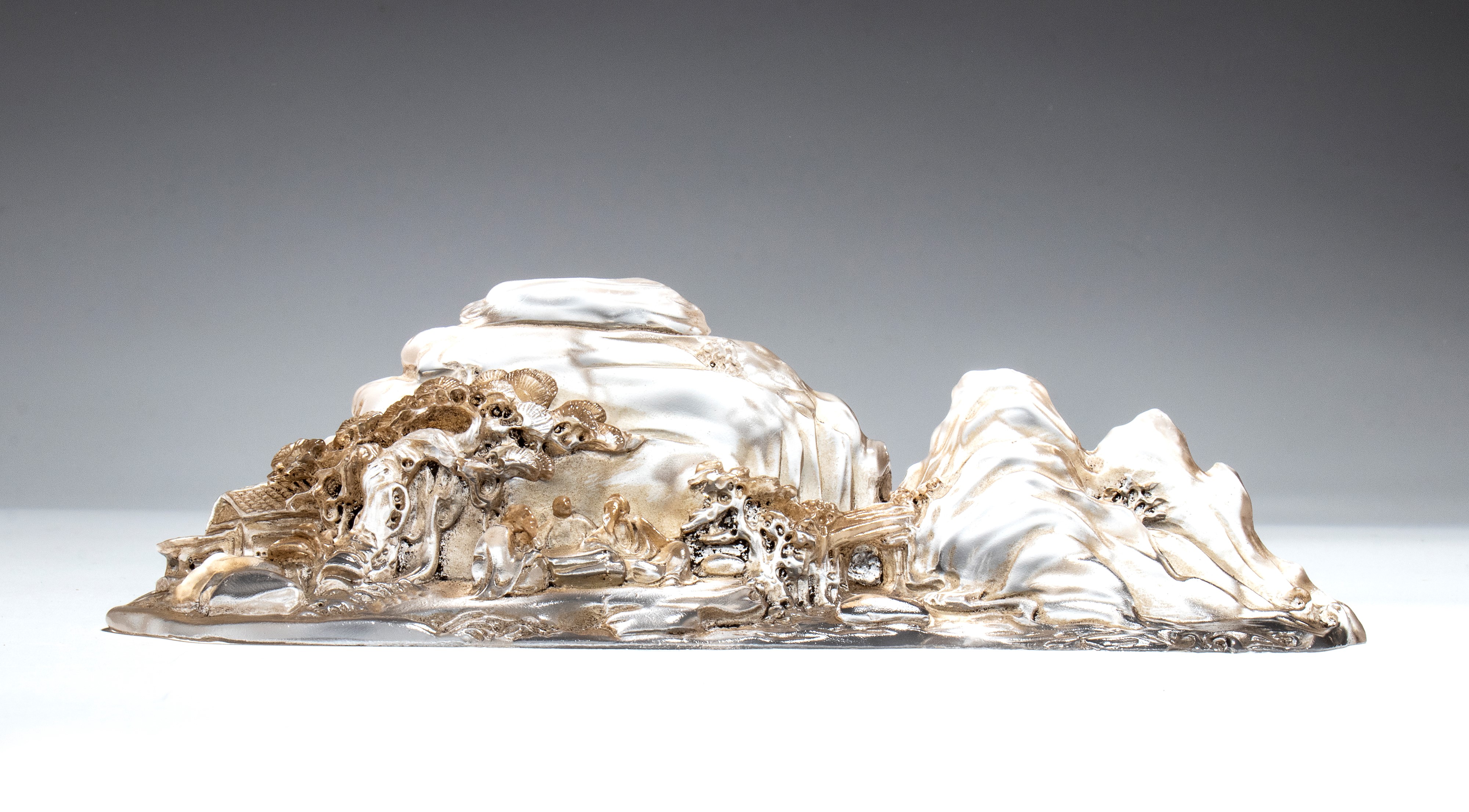 Oggetto decorativo da tavola per la calligrafia, riccamente decorato con soggetti di ispirazione letteraria.