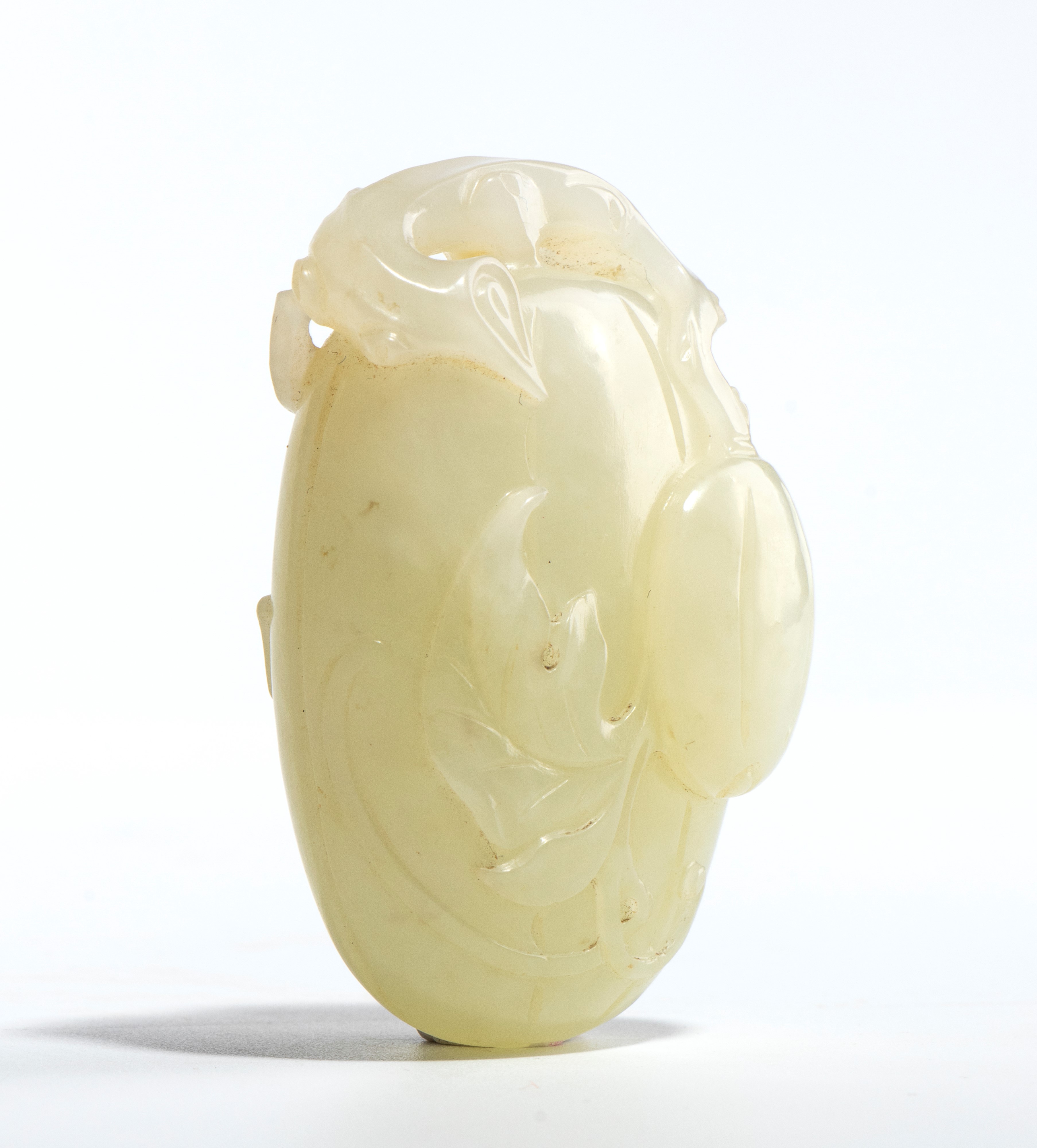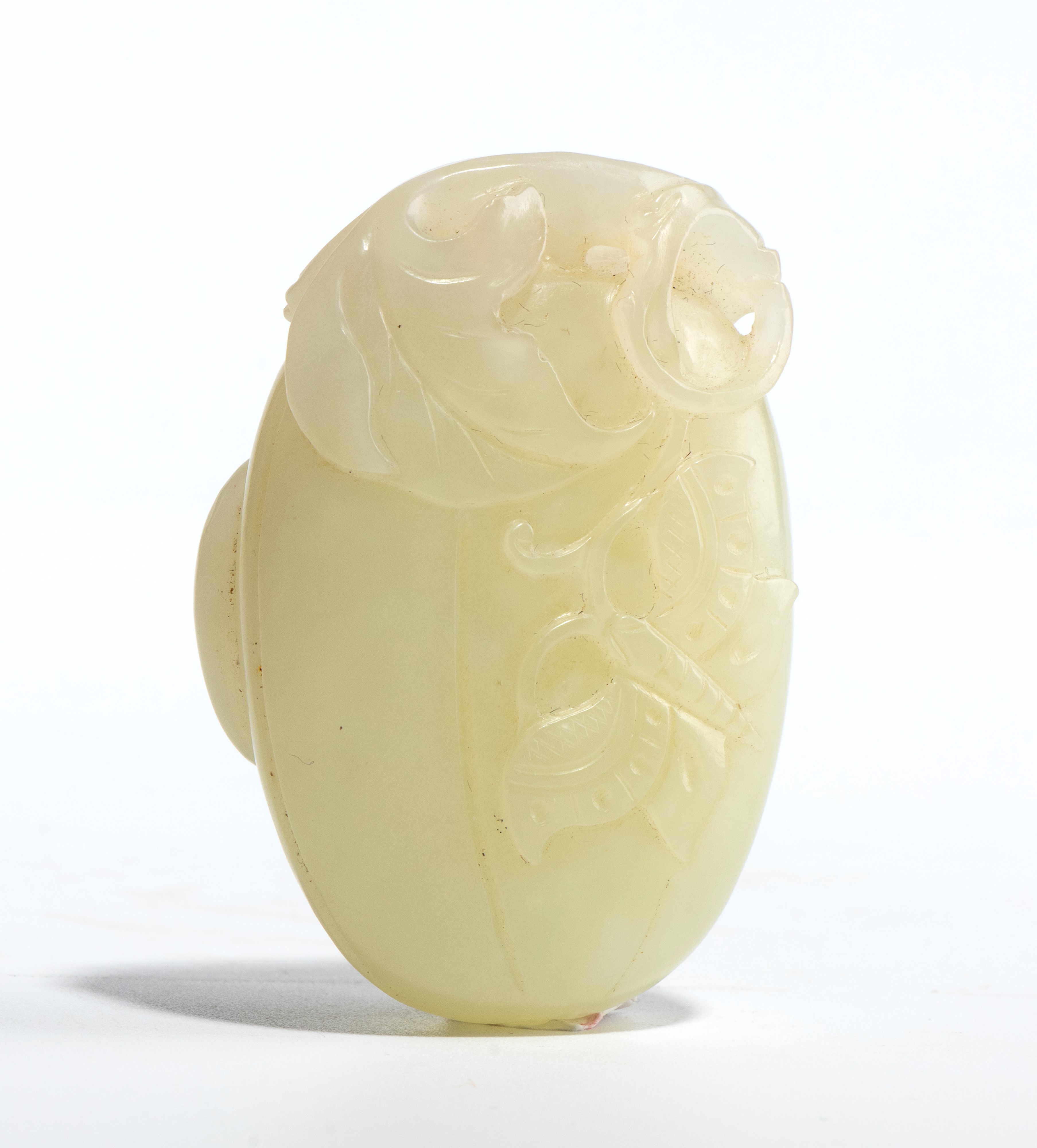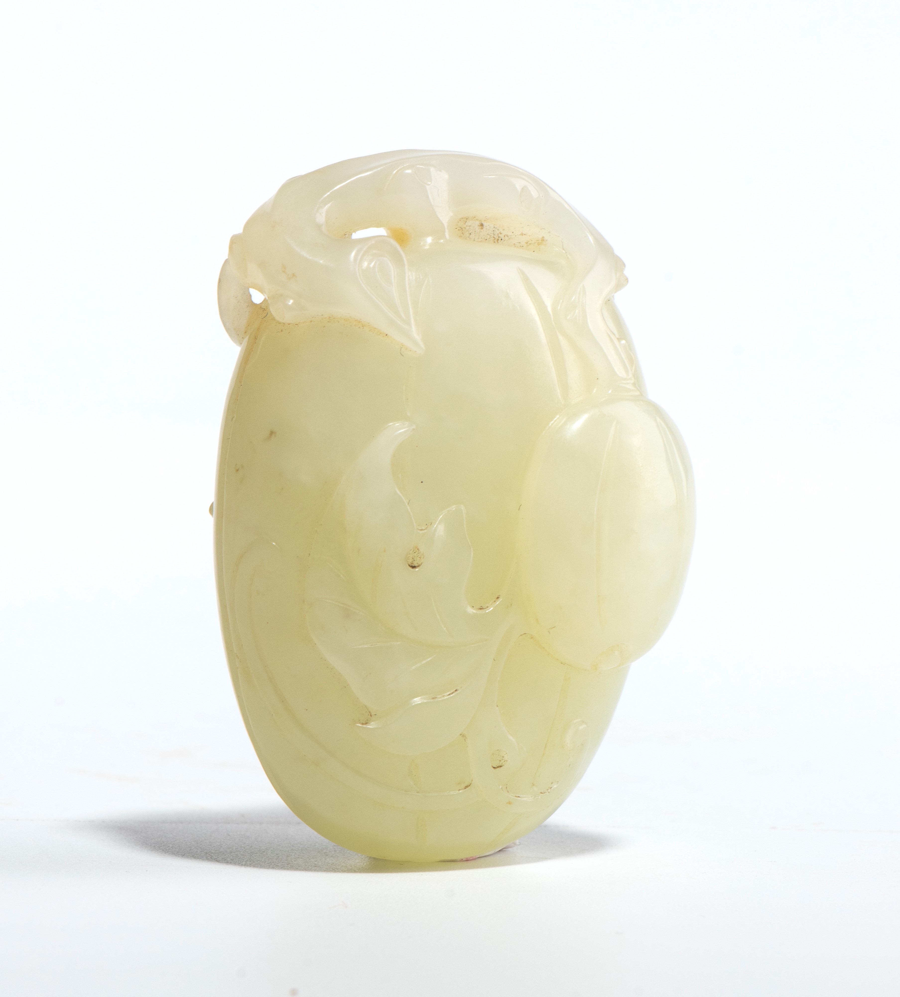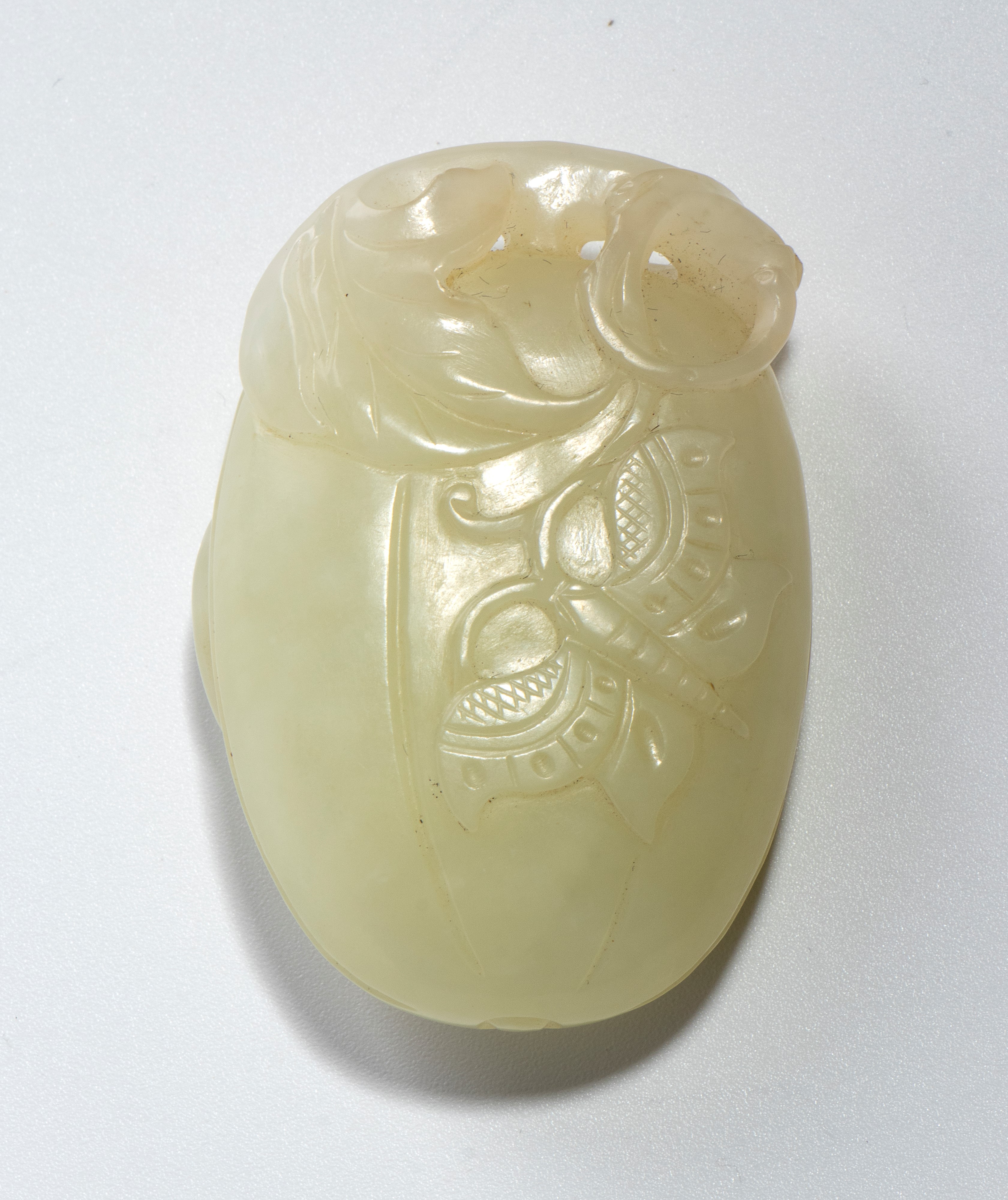 Ornamento pendente in giada decorato con meloni e farfalle.